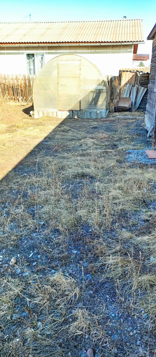 Небольшой домик в центре поселка.На участке есть недостроенный кирпичный гараж на 4 машины. Хороший вариант дачного участка. Разработанная плодородная земля.Есть возможность строительства  нового дома на данном земельном участке.