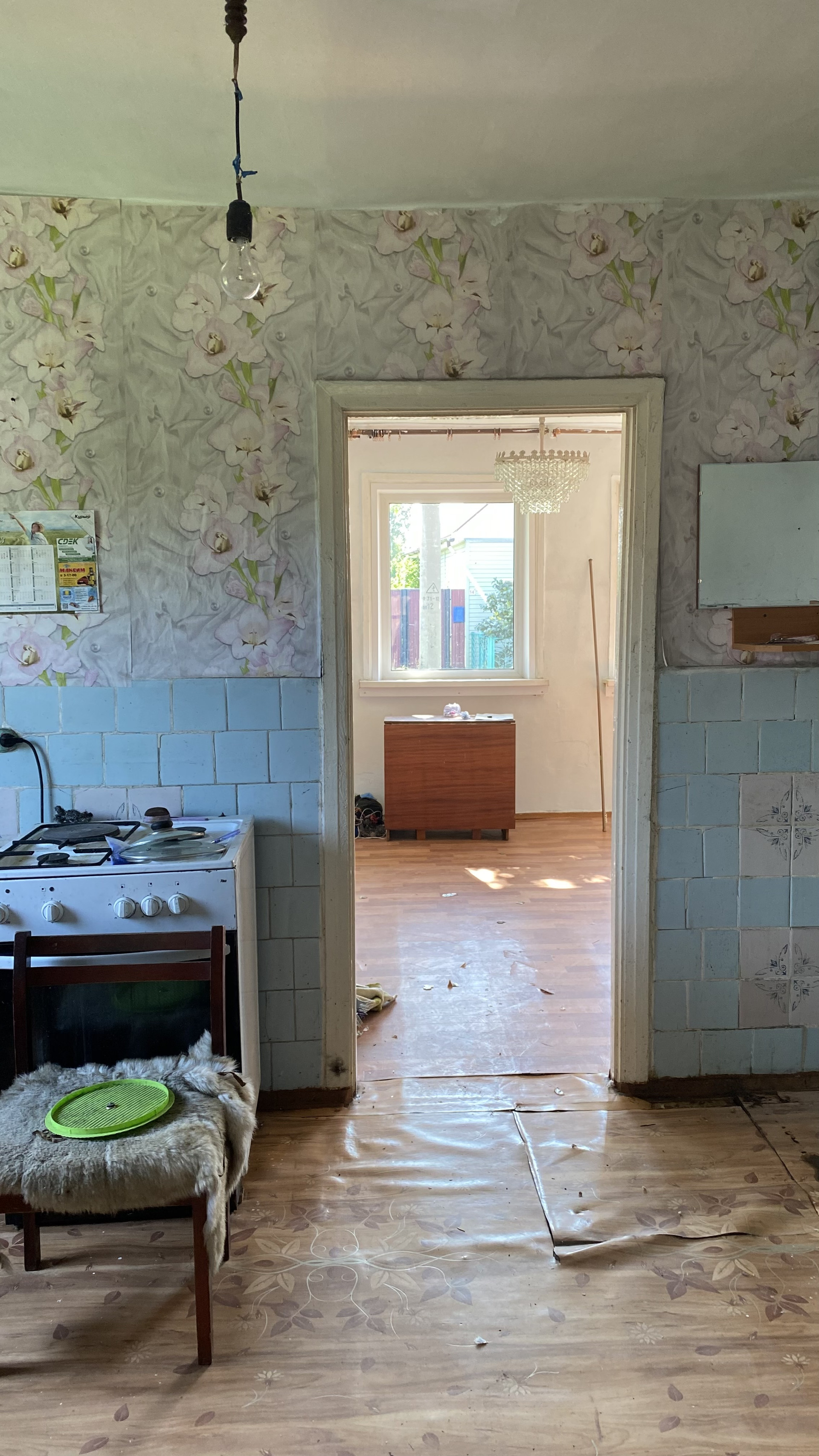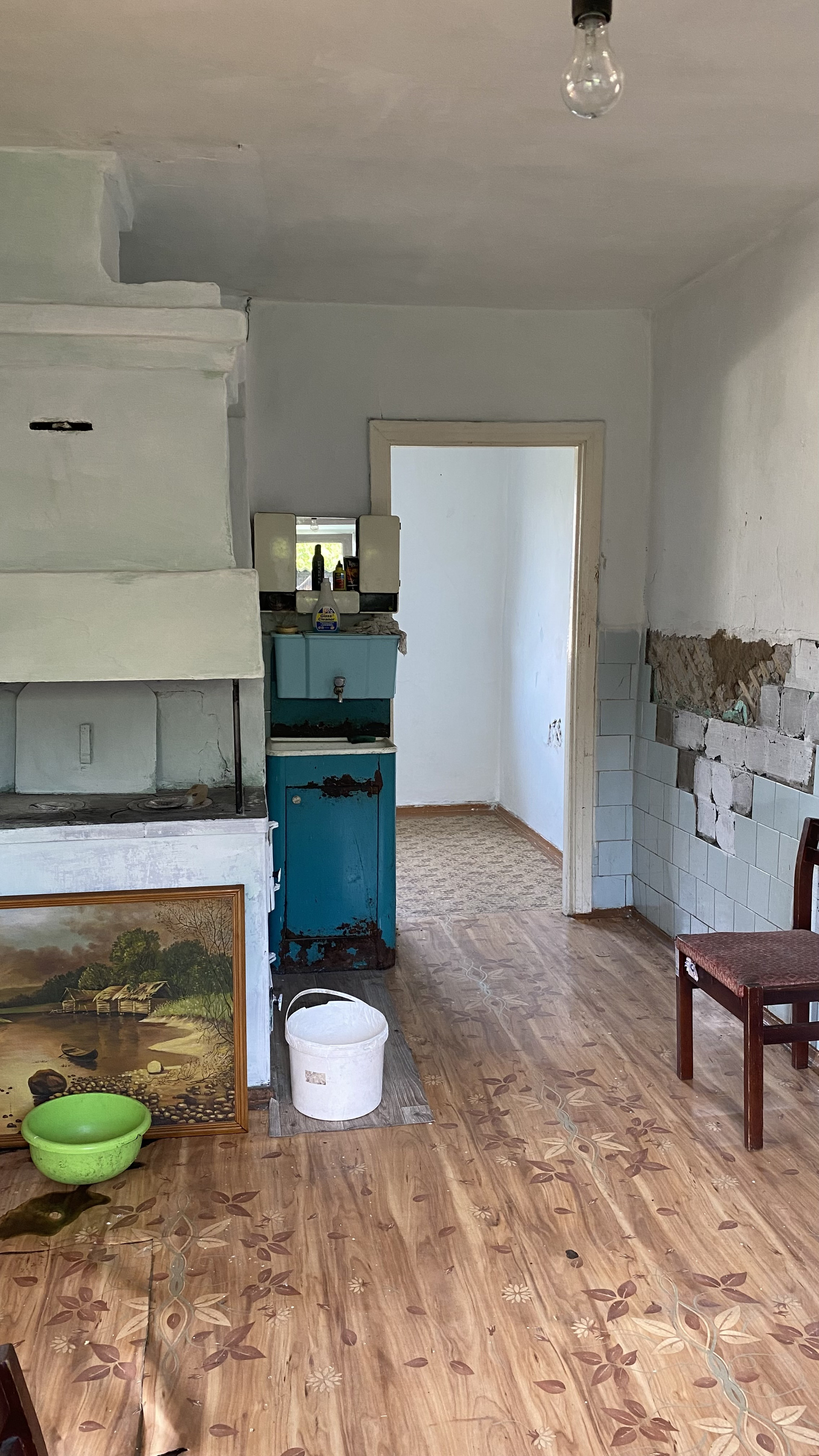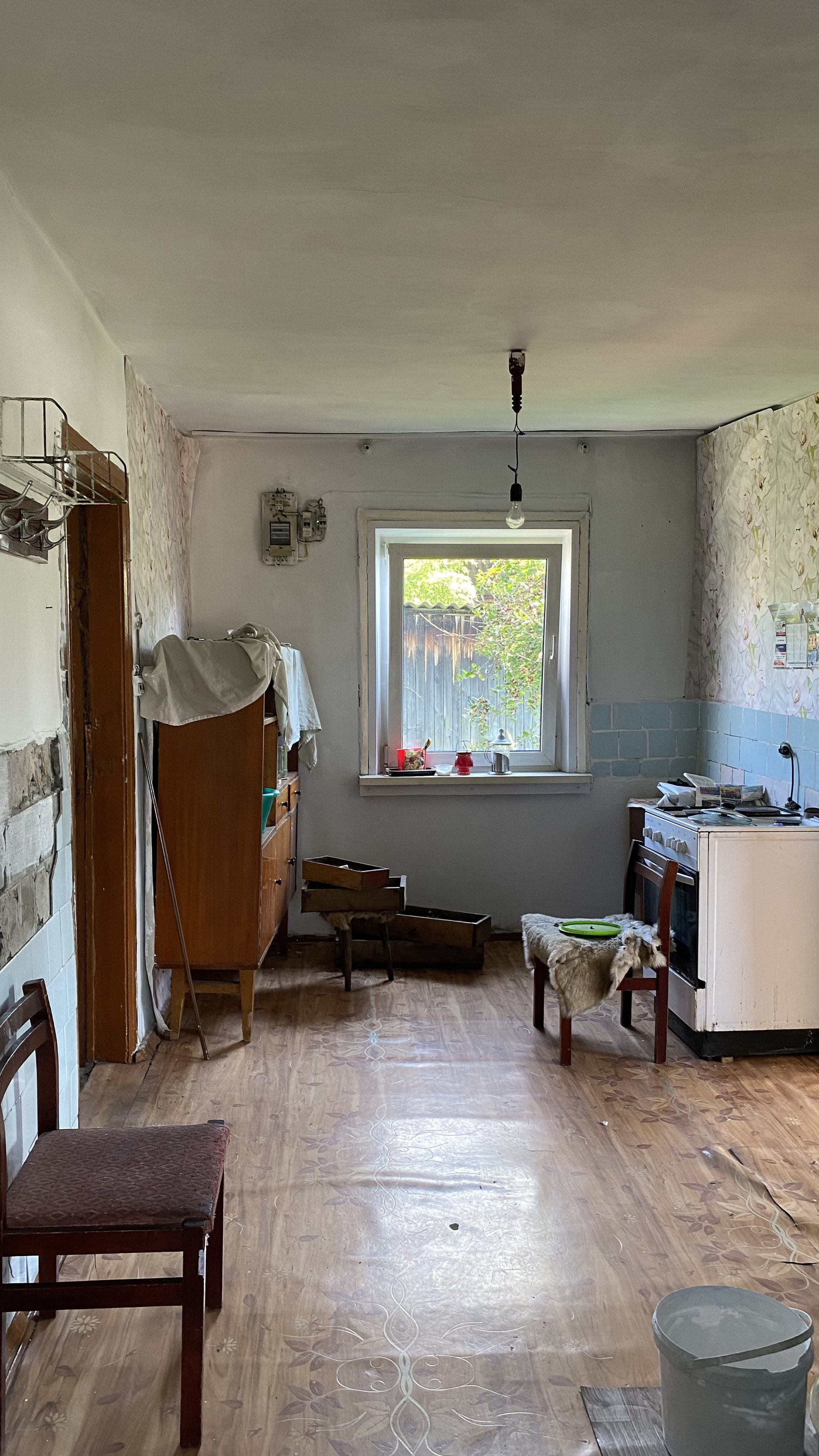 Выставлен дом в центре поселка. В доме окна пвх, колонка на улице.
