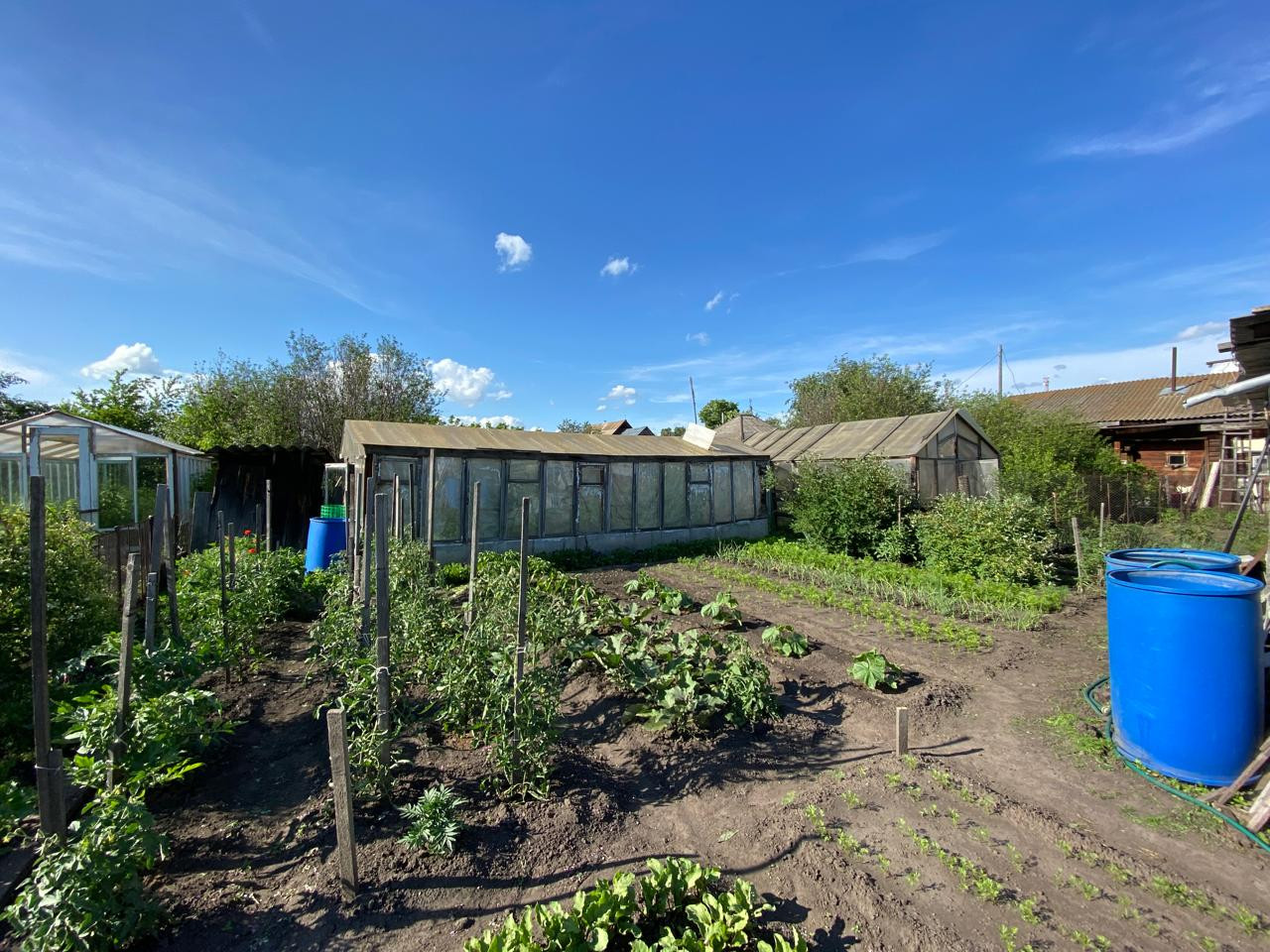 Огород хорошо удобрен, имеется теплица, плодоносящие деревья.