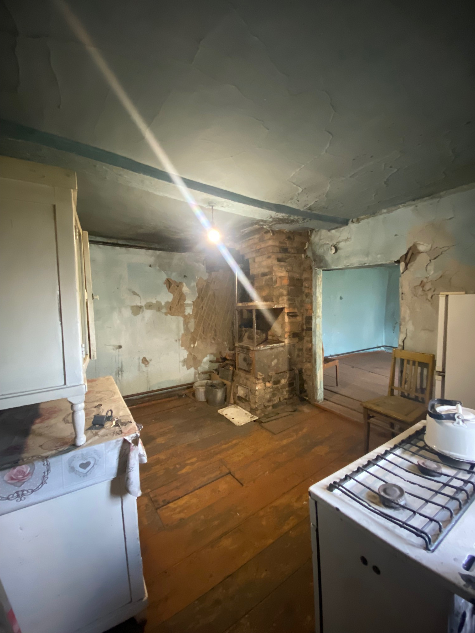 Небольшой домик ,жилой,  кухня и 2 комнаты, новая печь и трубы, дом очень теплый. Есть баня, летняя кухня. В доме большое подполье. Хороший вариант для строительства, или как дачный домик. требуется ремонт.