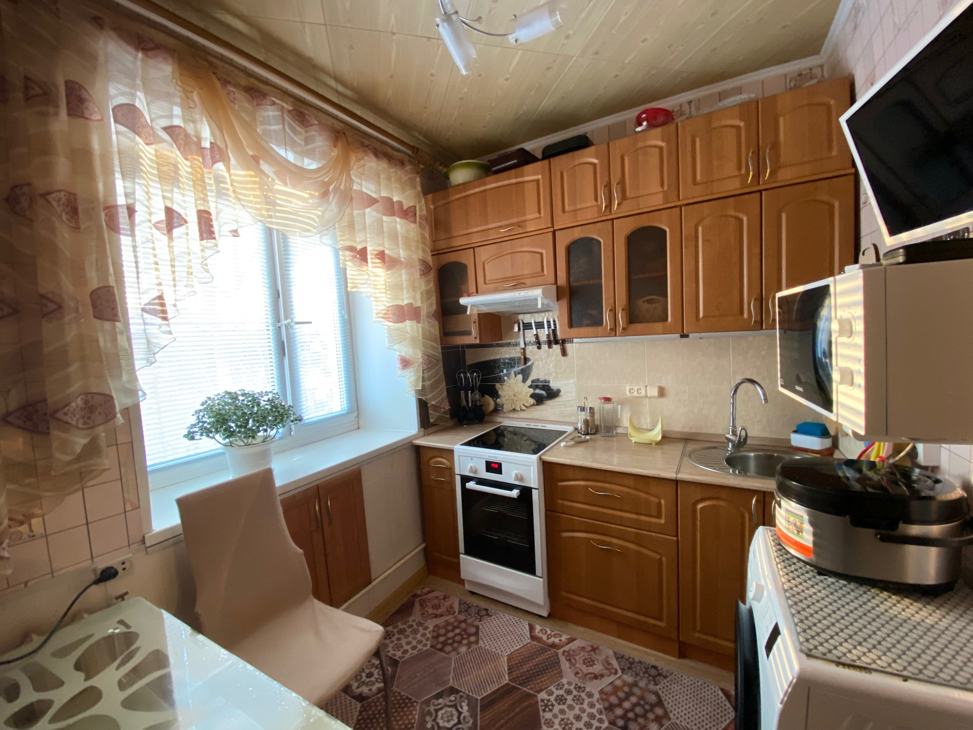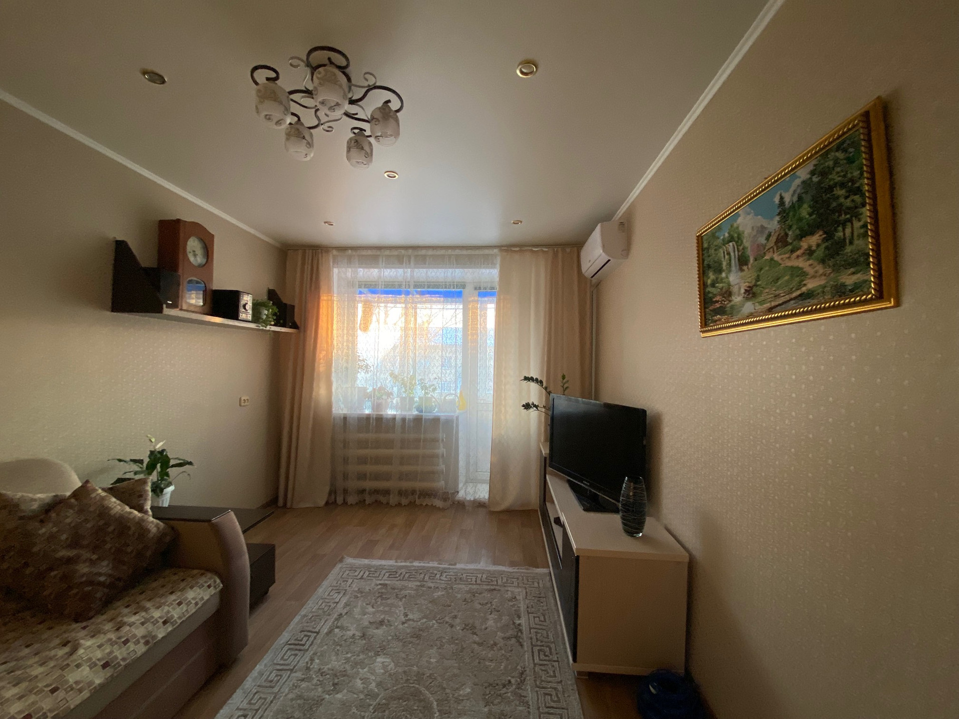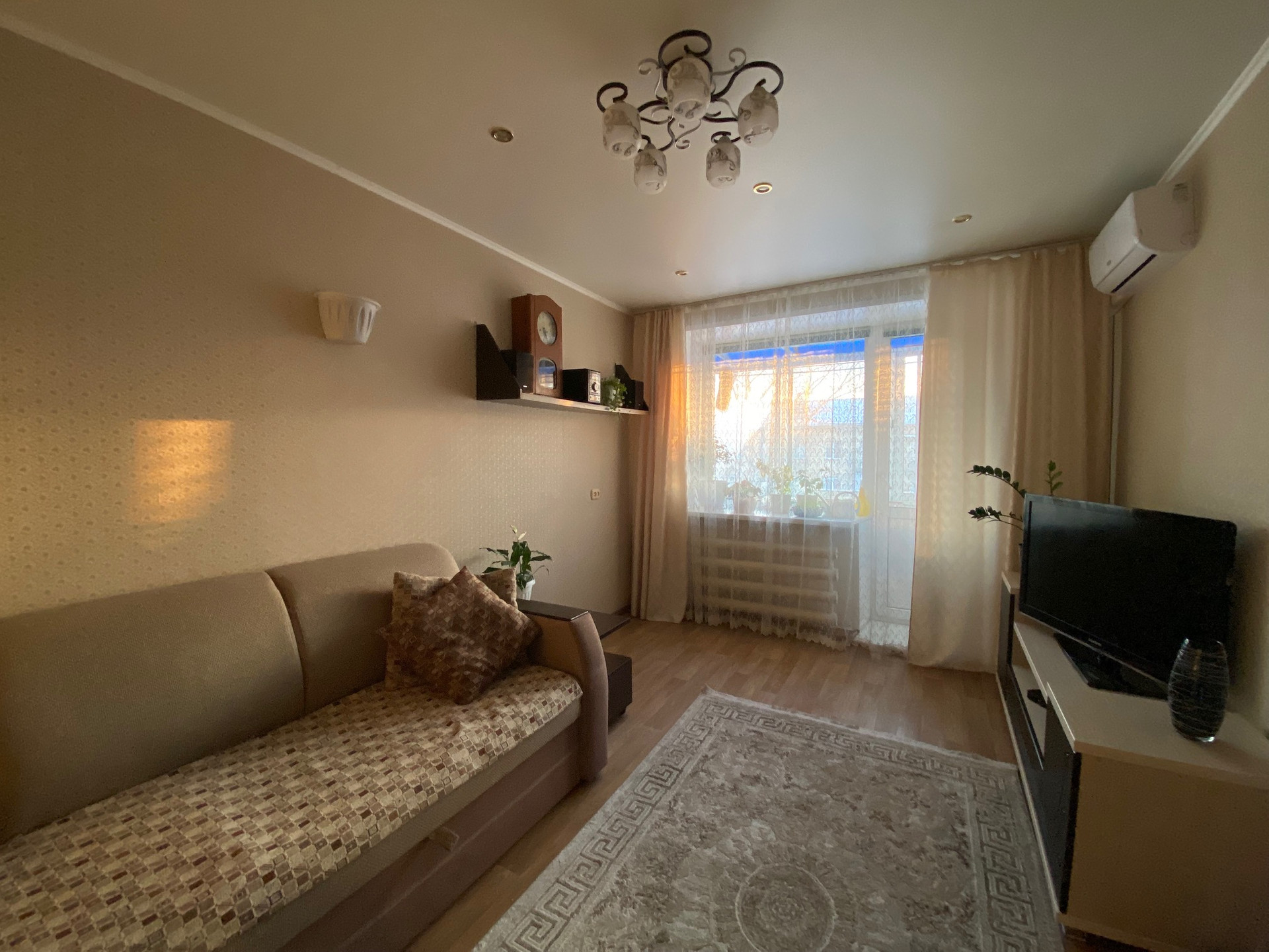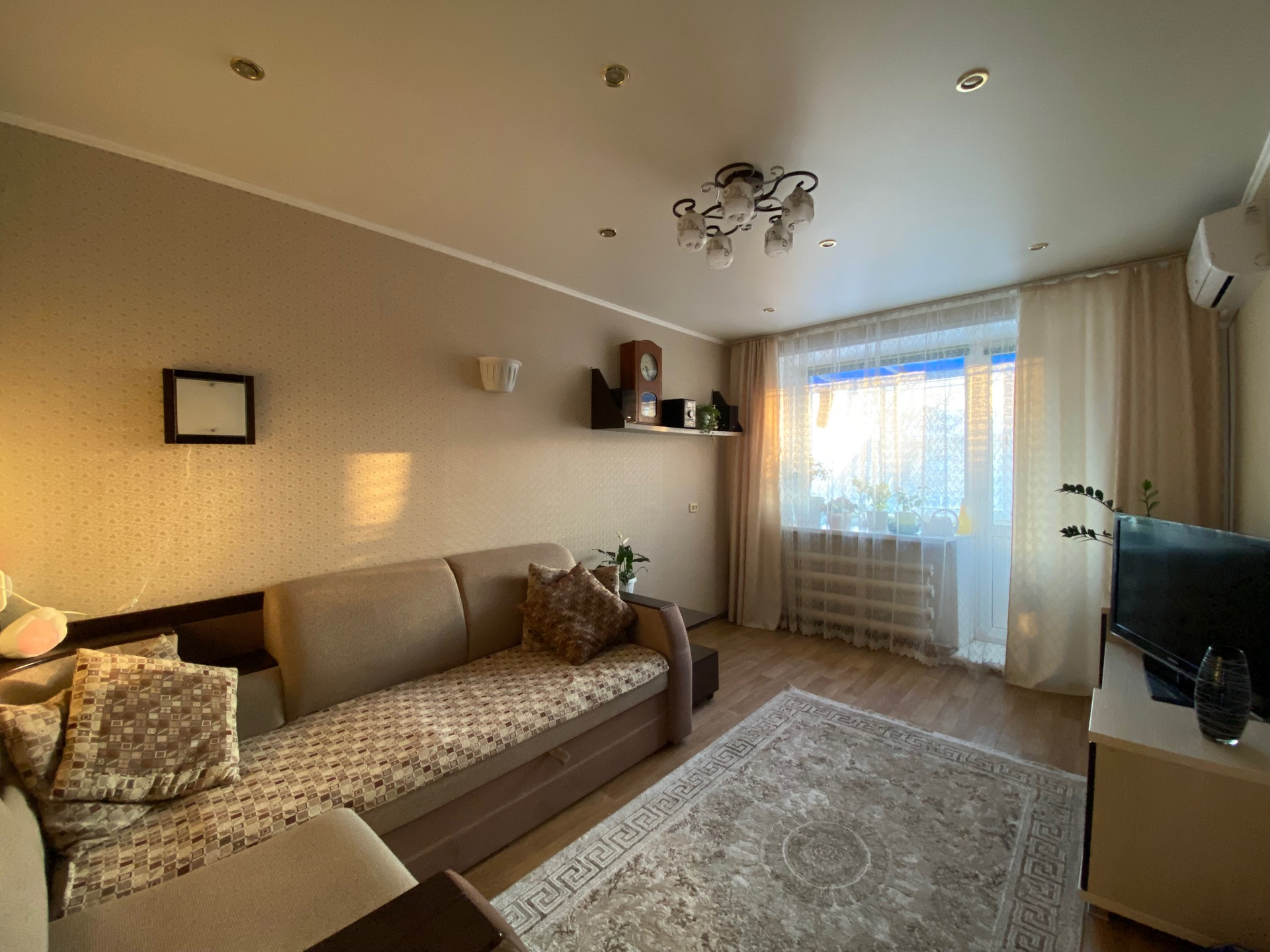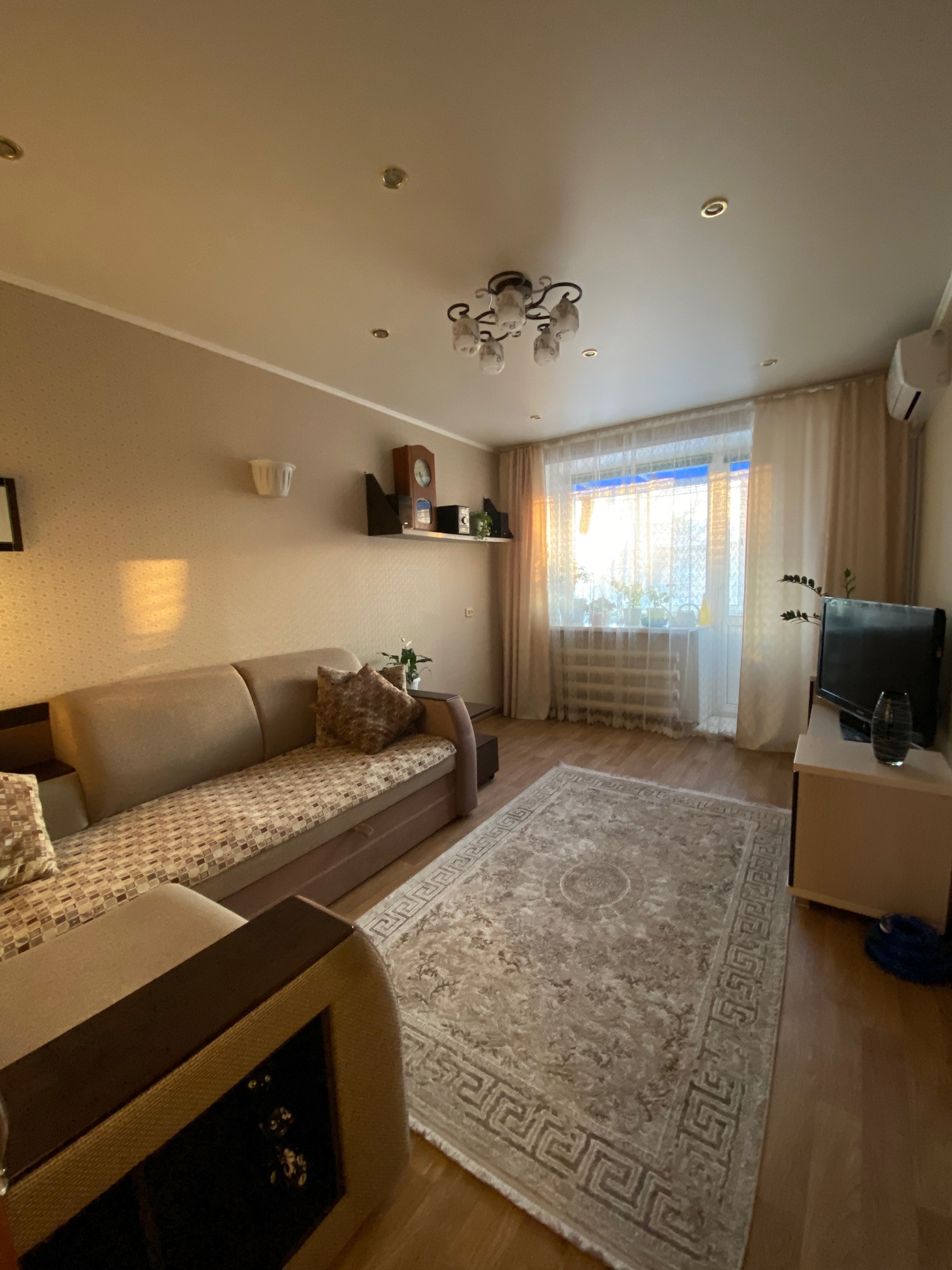 Теплая, Все окна ПВХ,балкон застеклен, натяжные потолки, на полу ламинат, установлен кондиционер, дверь железная.