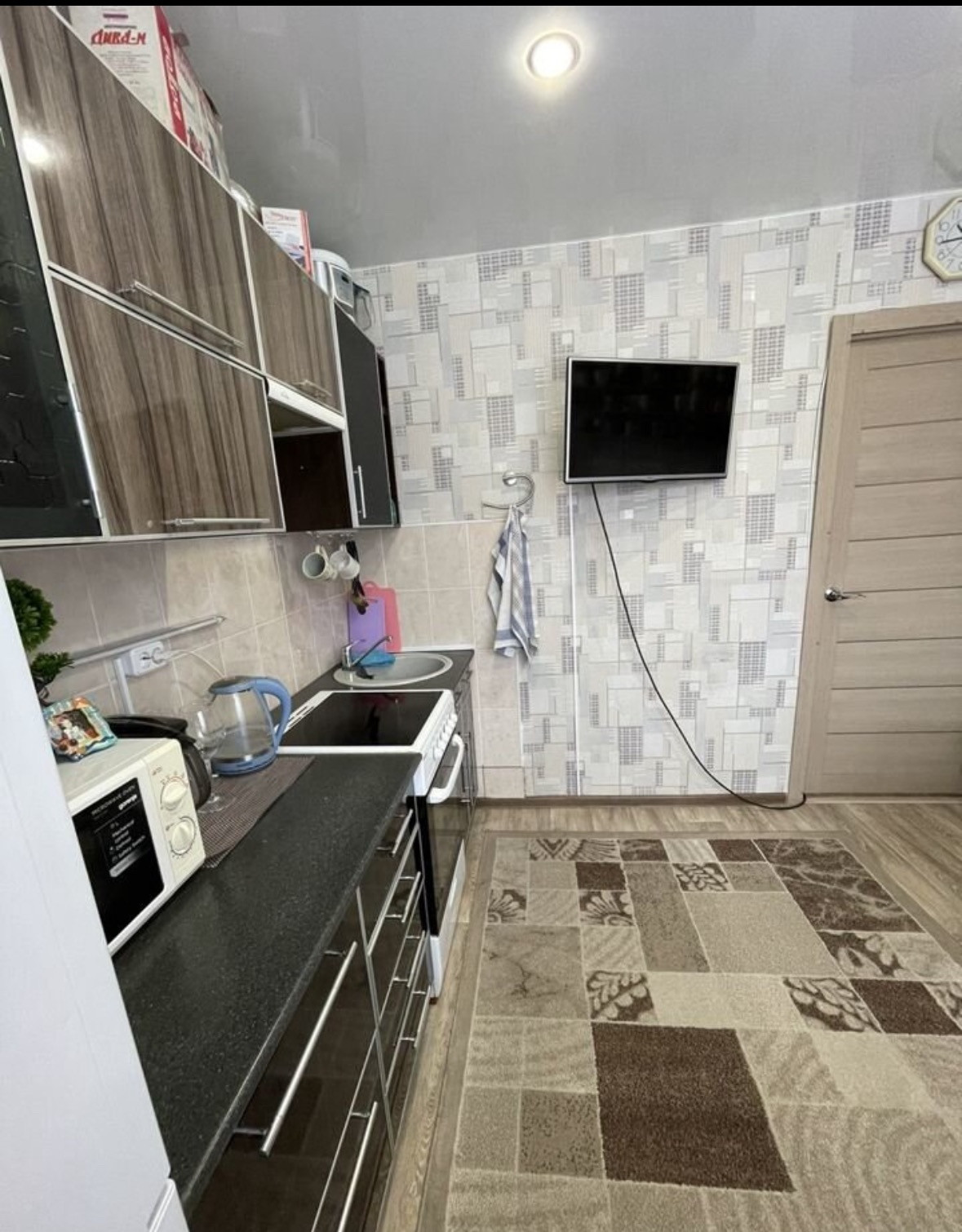 Остаётся вся кухня, плита, вытяжка!