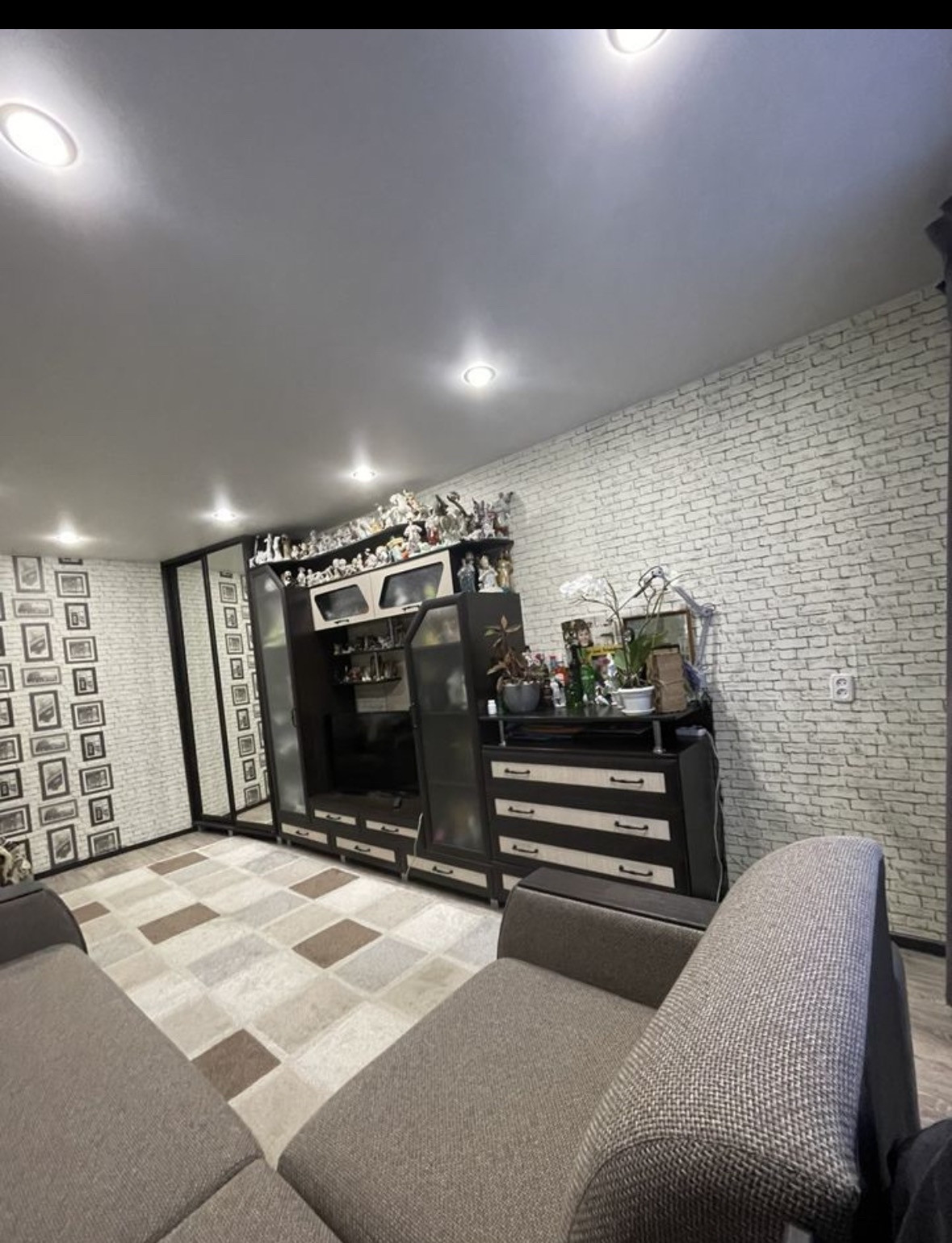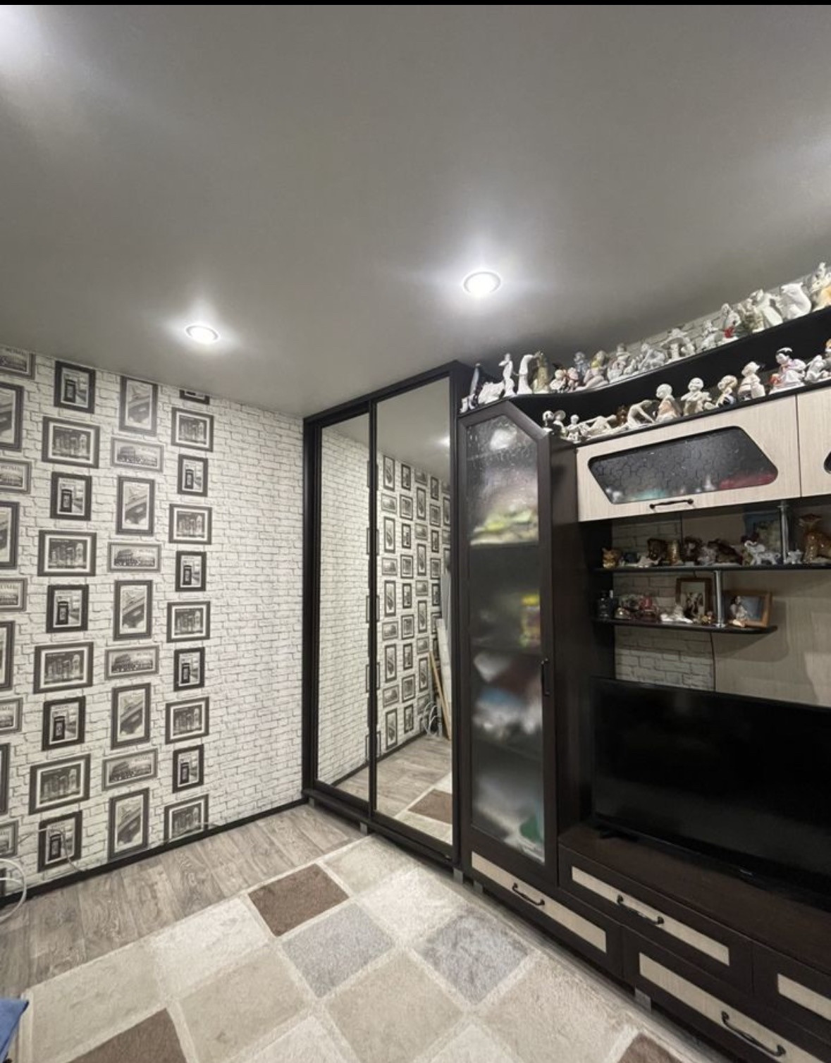 В зале остаётся встроенный шкаф в потолок-вместительный с полками и шкафчиками внутри.