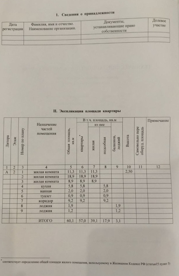 Общая площадь 60.1 м2