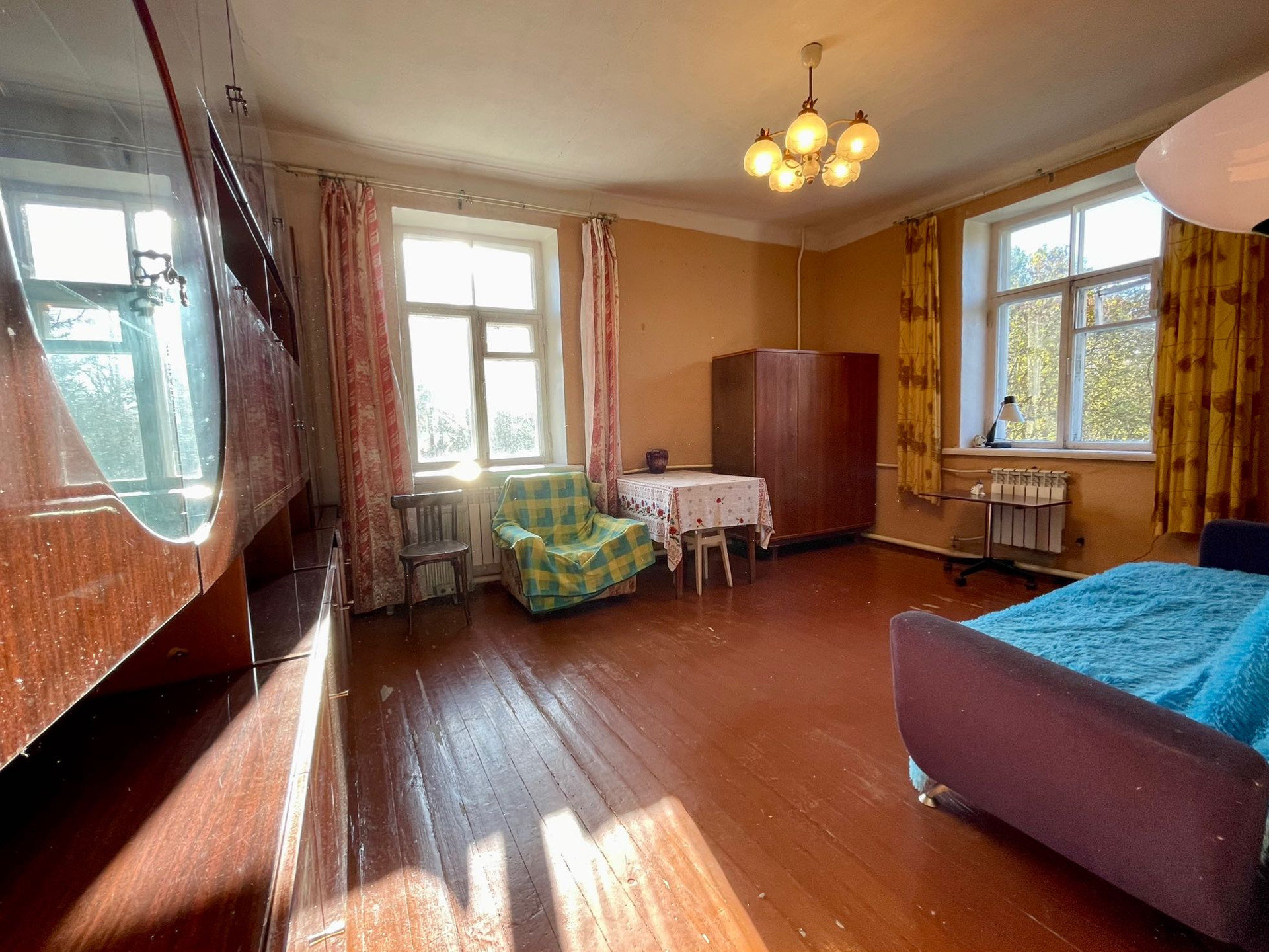 В прямой продаже солнечная 1 комнатная квартира 34,5 кв .м. Комната просторная 20 кв.м., с двумя большими окнами на две стороны. Кухня 7.6 кв. м . Высокие потолки 2,87.В квартире удобная планировка. Горячая вода постоянно, газовая колонка. Прихожая с тамбуром, ванна, сан-узел. Двор тихий, уютный, весь утопает в зелени. Есть благоустроенная детская площадка. Дом стоит в плане реализации 2023-2025  региональной программы капитального ремонта общего имущества в многоквартирных домах. Инфраструктура развита. В пешей доступности: школа, поликлиника, детский сад, детская музыкальная и художественная школа, стадион, магазины: Магнит, Пятёрочка, Верный, аптека, Сбербанк, почта. На автомобиле 25-30 мин до СПб.