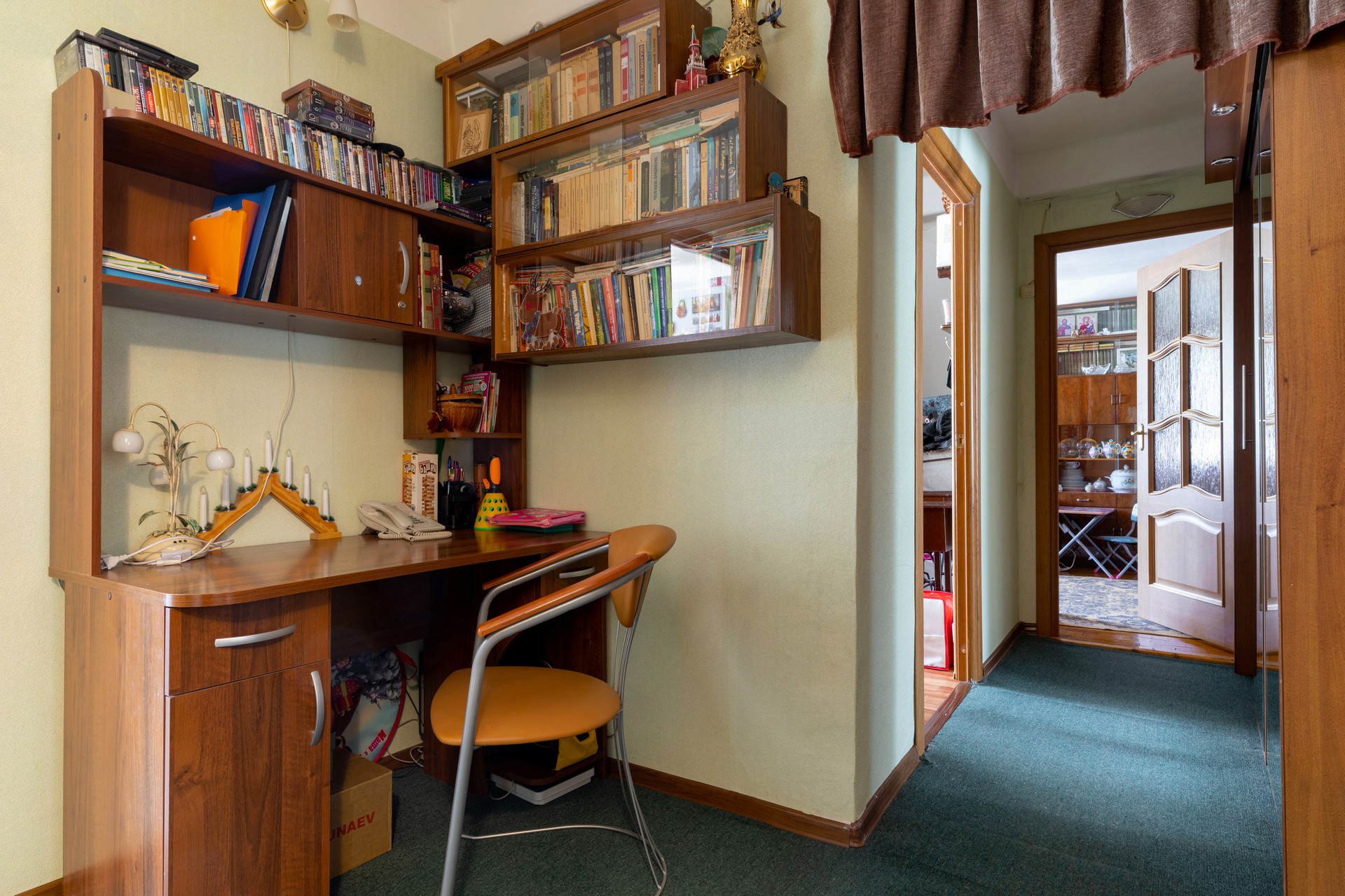 - действительно большая прихожая с местом для гардероба, куда поместятся все вещи, так же у нас оборудовано место для кабинета