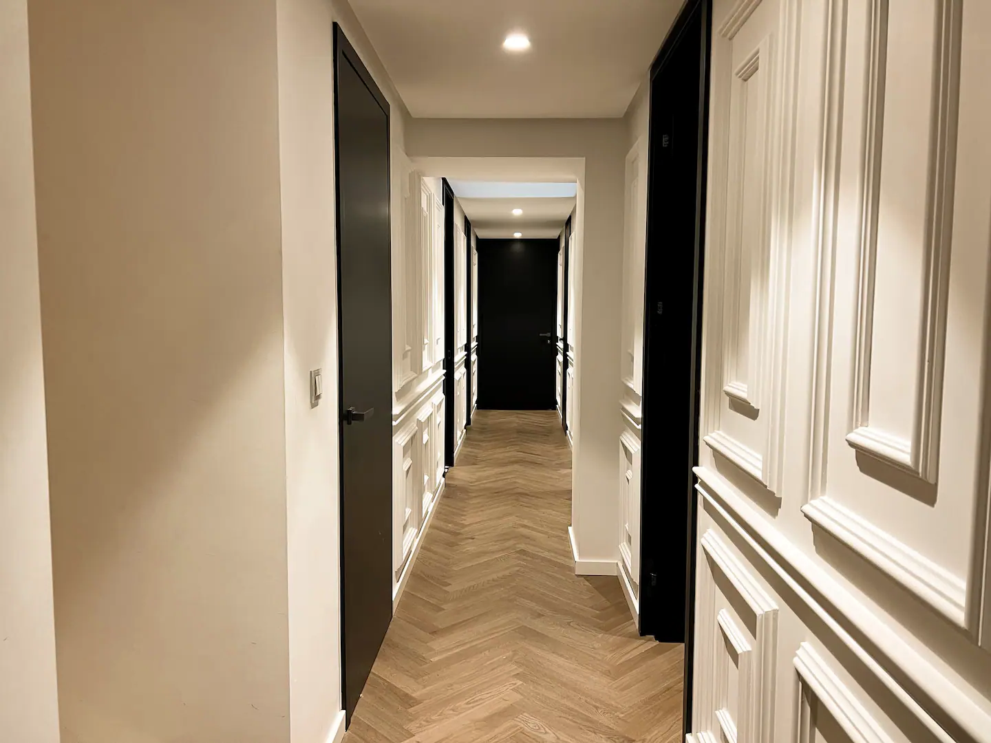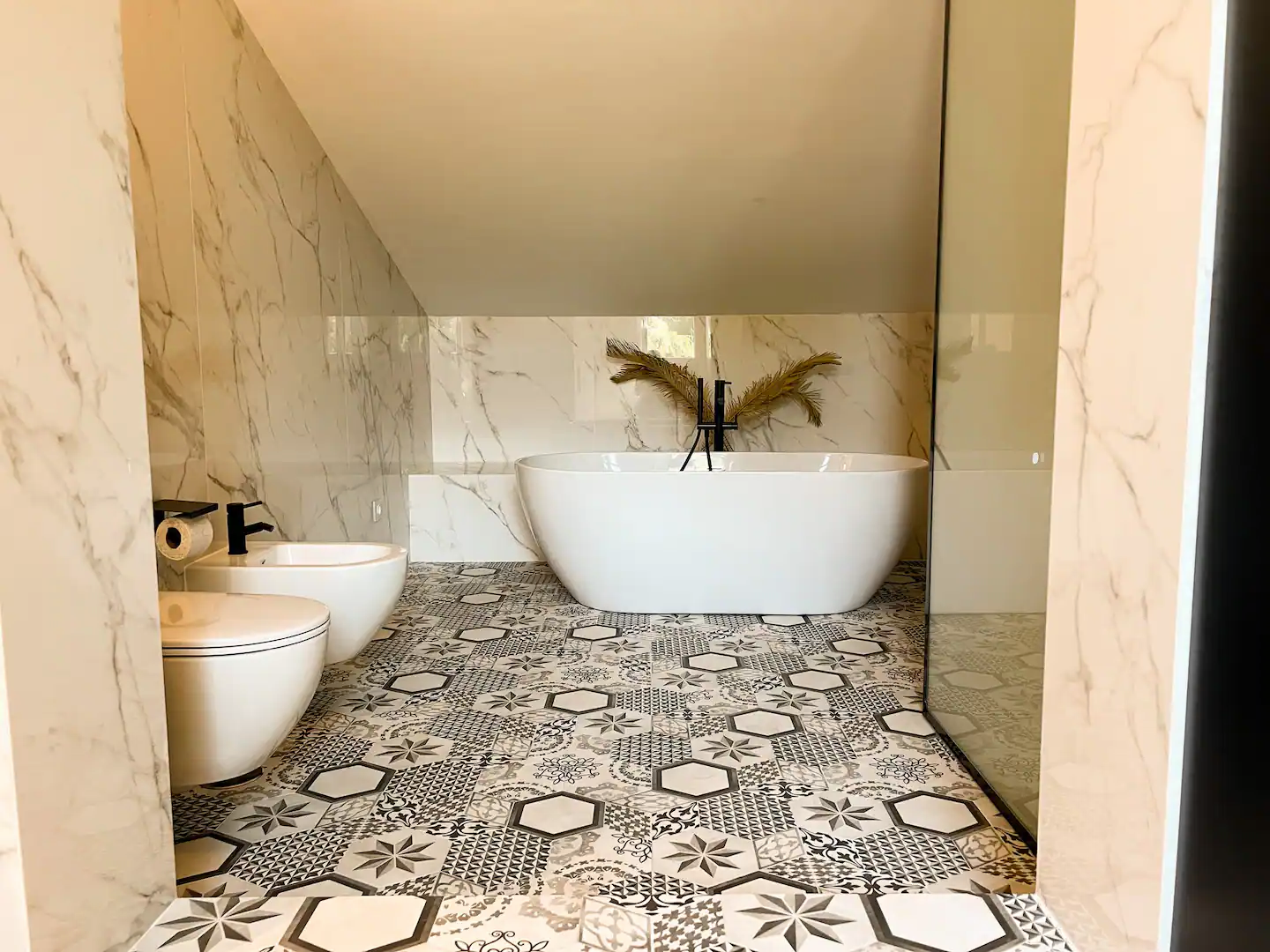 В отделке фасада использовался натуральный камень - Травертин, эксплуатируемая кровля с выводом коммуникаций. Остекление витражное с использованием алюминиевого профиля. Вилла полностью автономна, установлена система «Умный дом», центральная система вентиляции, кондиционирования. Все коммуникации центральные (свет, вода, канализация)