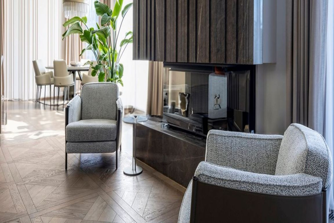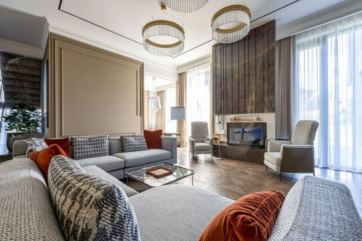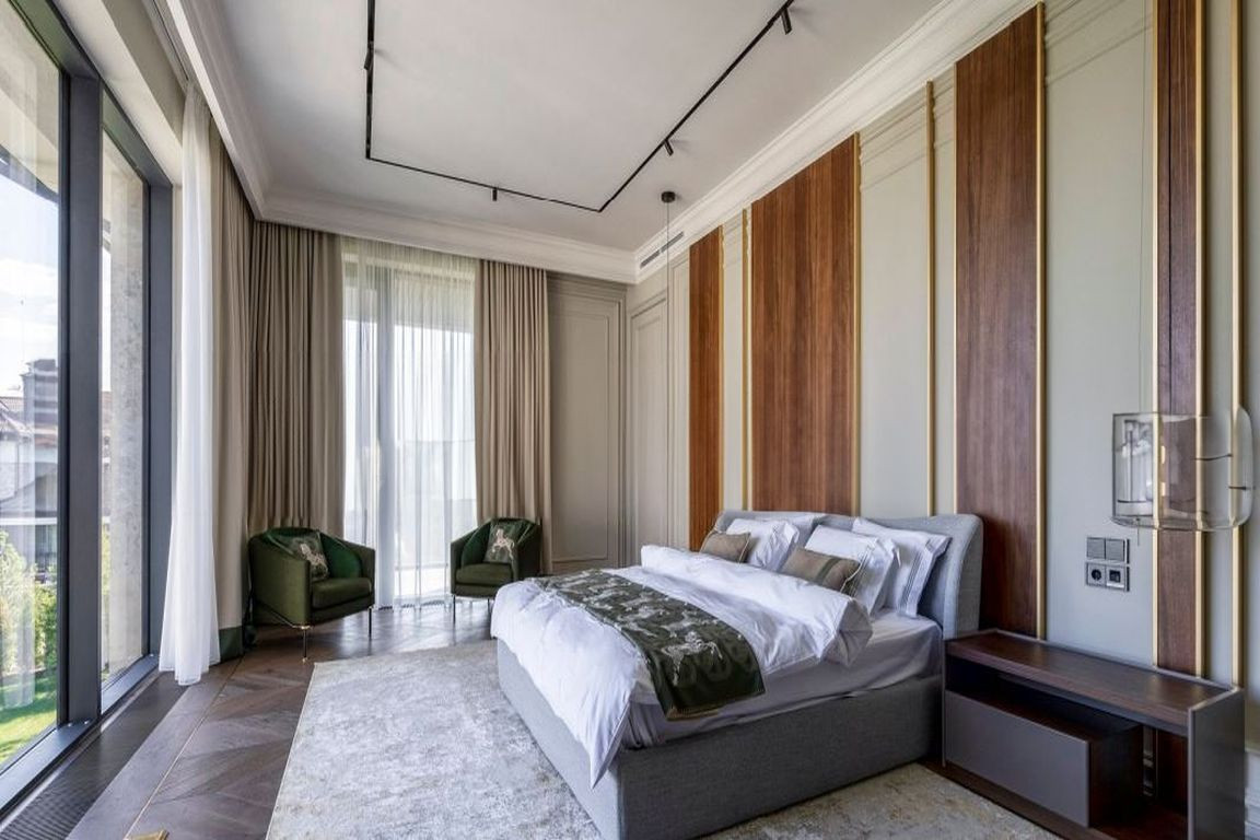 У виллы грамотная планировка: две мастер-спальни с большими гардеробными и личными санузлами и 4 спальни, а также уютная кухня-гостиная со вторым светом. Вилла имеет просторные террасы с видом на море и горы, оборудована лифтом