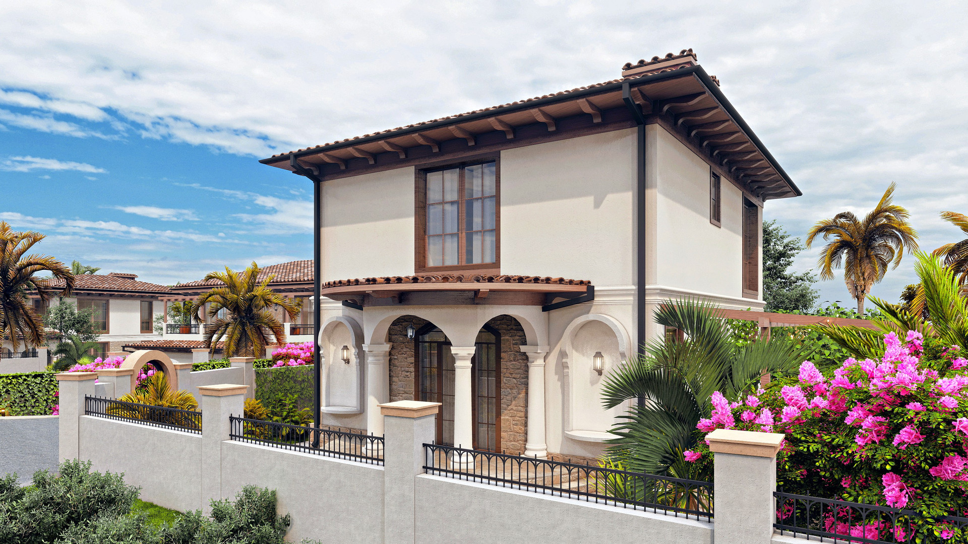Вилла расположена в коттеджном поселке в Сочи, одном из самых престижных и живописных мест Краснодарского края. Это уникальное место, где каждый дом выполнен в индивидуальном архитектурном стиле, что создает неповторимую атмосферу.