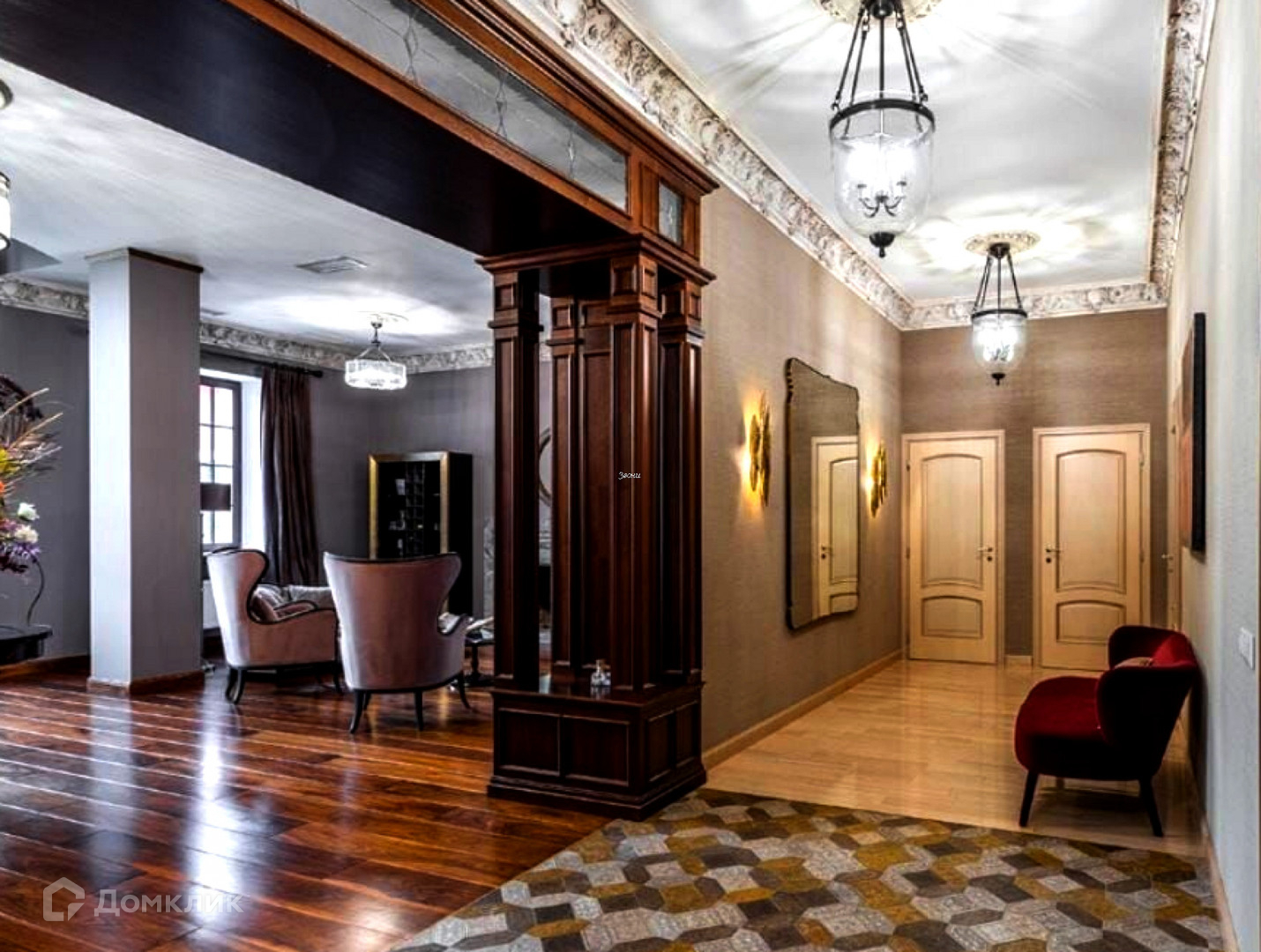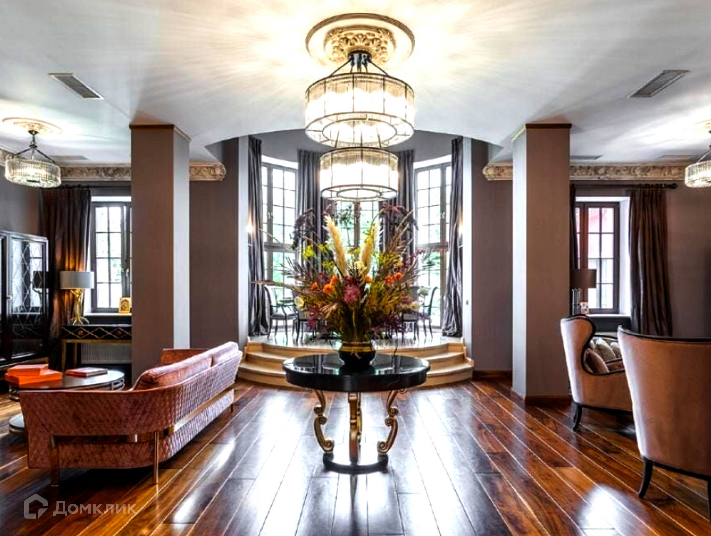 хозяйская мастер-спальня с санузлом и гардеробной, бильярдная, библиотека, три гостевых спальни.