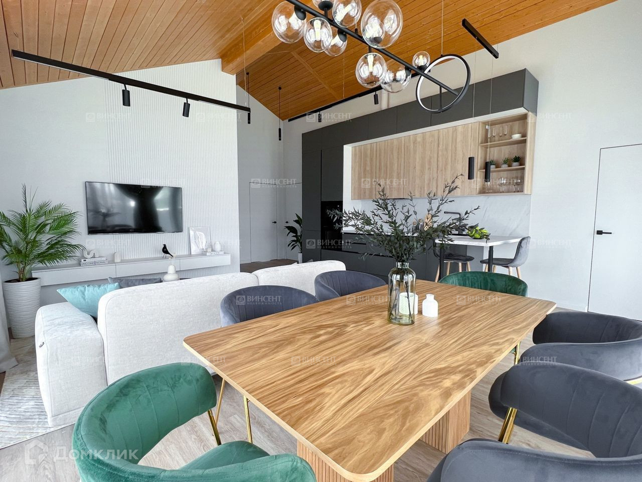 Грамотная планировка позволяет комфортно разместиться большой семье. В доме есть: просторная кухня-гостиная, множество спален, 3 санузла, кабинет, сауна.