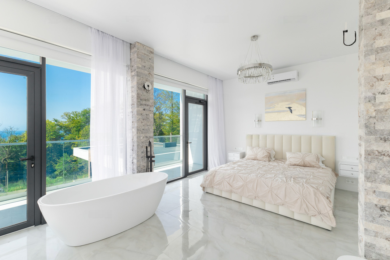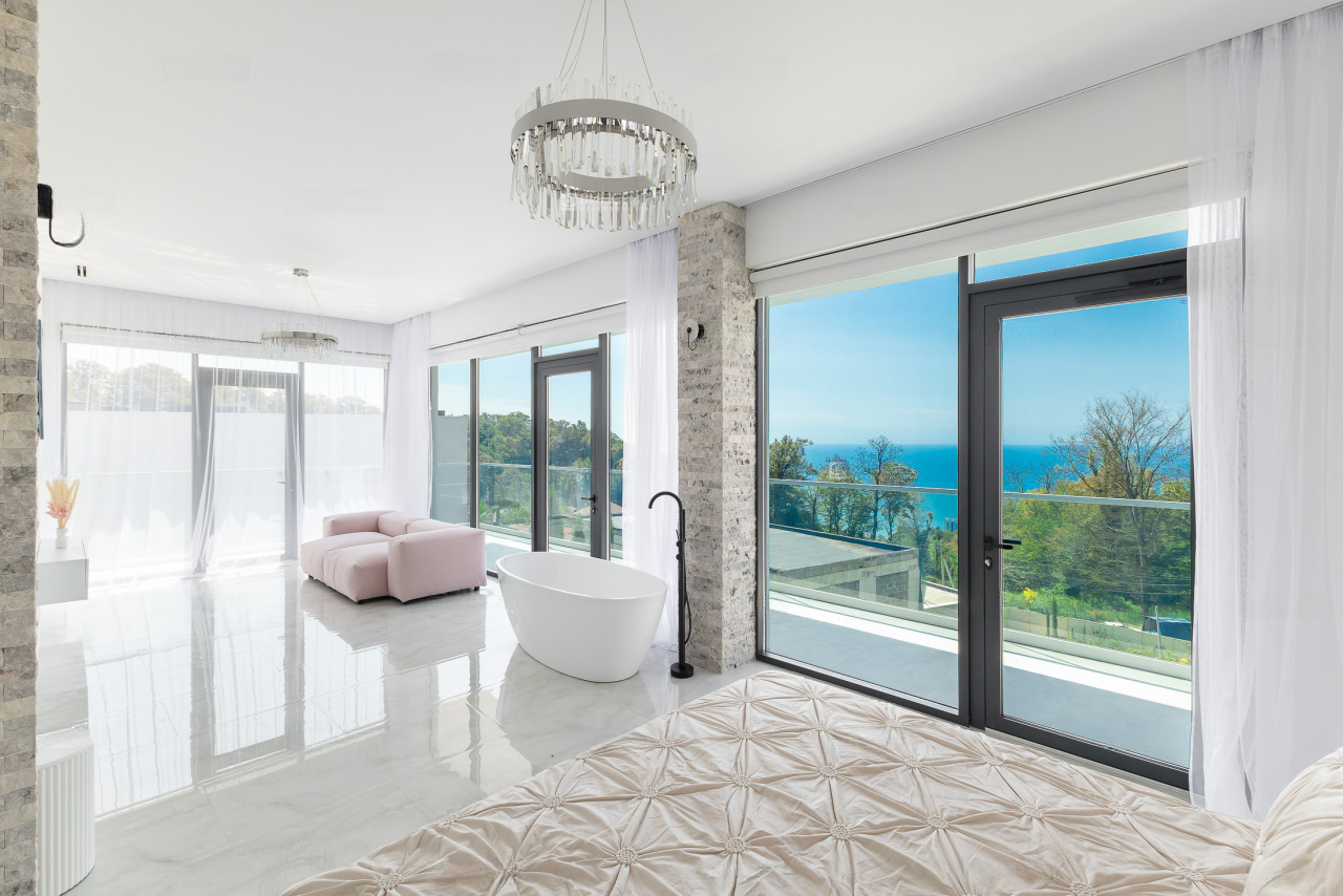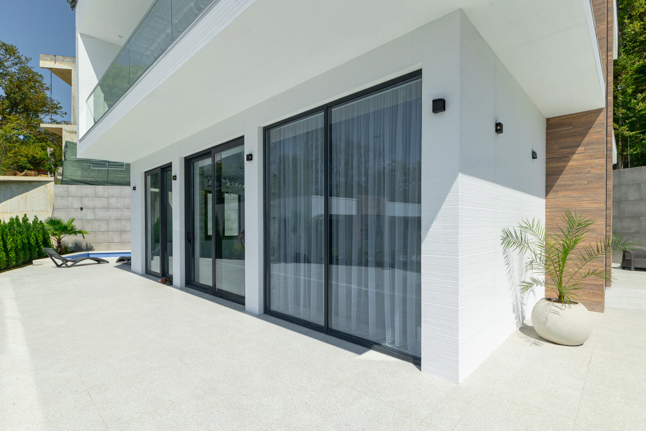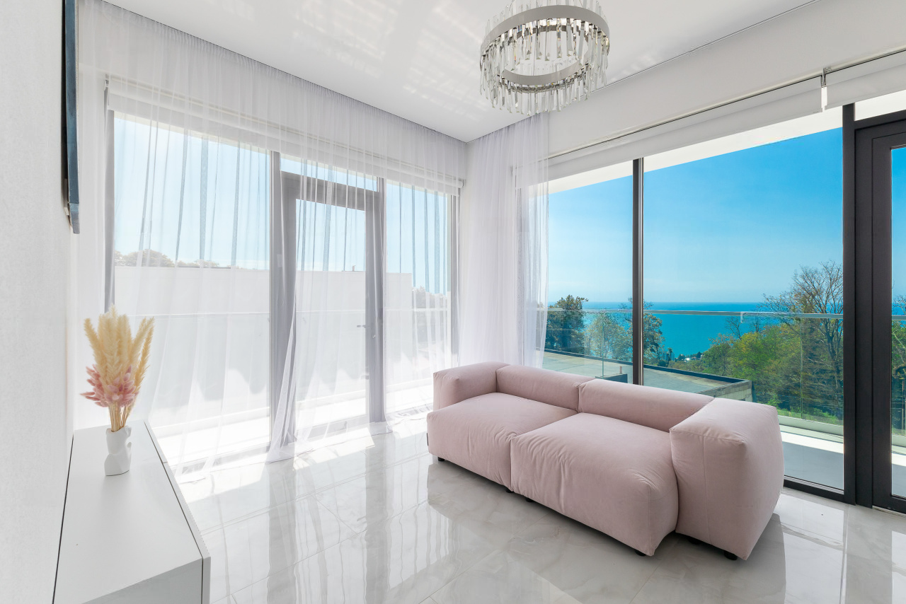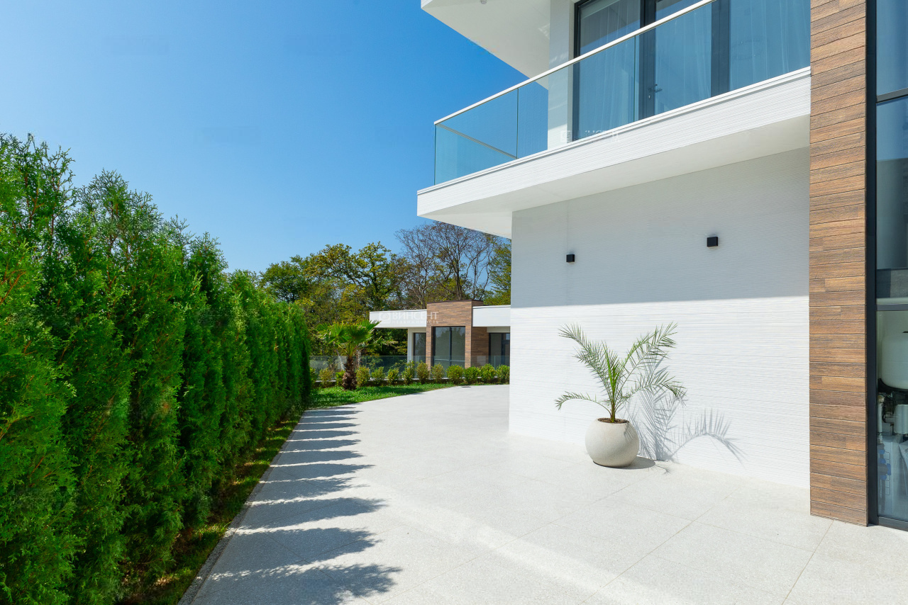 Вилла расположена в приватном коттеджном посёлке с закрытой территорией, охраной и видеонаблюдением. Поселок находится в Сириусе в близи от Имеретинской набережной и Олимпийского парка, где находится самая красивая набережная и лучшие рестораны города.