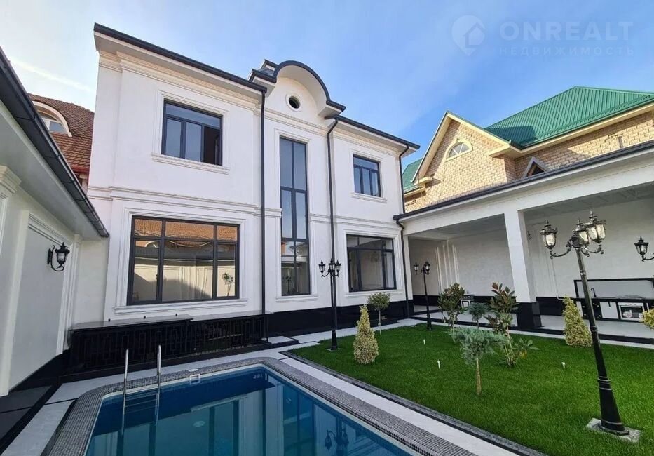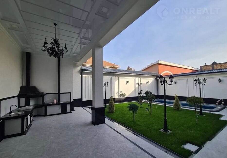Во дворе подогреваемый бассейн, летняя кухня с комнатой отдыха, зона барбекю.