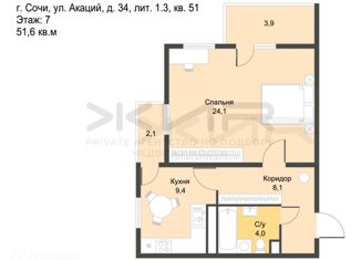 Продам однокомнатную квартиру, 52 м2, улица Акаций, 34к3