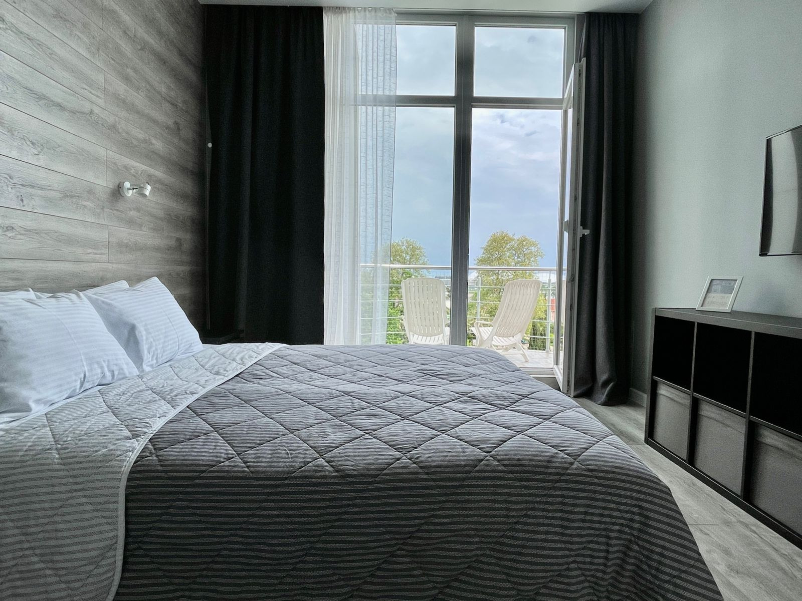 На первом уровне квартиры находятся три отдельные спальни и большая ванная комната с панорамным остеклением и превосходнейшим видом на Олимпийский парк! Второй уровень высотой 3,5 метра и панорамным остеклением – кухня-гостиная площадью 60 кв.м., отдельной гостевой комнатой,  сан.узлом. Отдельное преимущество – это просторная открытая терраса с умопомрачительным обзорным видом на Олимпийский парк, морскую акваторию и горы.