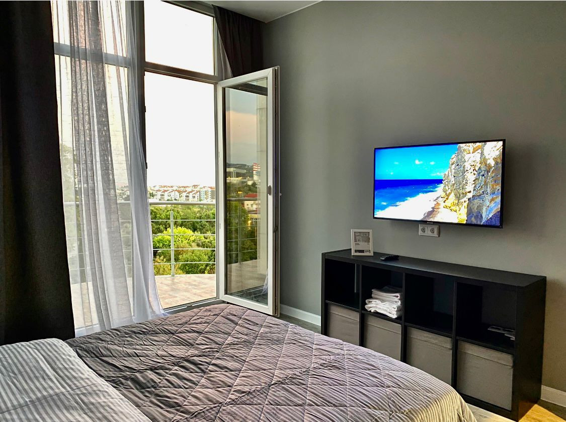 Комплекс "Солнечный город", в котором расположена квартира, находится в одном из самых престижных районов Сочи - поселке городского типа Сириус. Жилой квартал «Солнечный город» был построен в 2013 году по ФЗ-214 до открытия Олимпийских игр 2014. Первые жители комплекса наблюдали фееричное открытие и закрытие Великих Олимпийских игр из окон своих квартир. «Солнечный город» как маленький городок в отдельном государстве пгт Сириус. Закрытая территория со своей внутренней инфраструктурой - продуктовый магазин, аптека, частный детский сад, салоны красоты, наземный паркинг с местами общего пользования, подземный паркинг, детская и спортивная площадки.