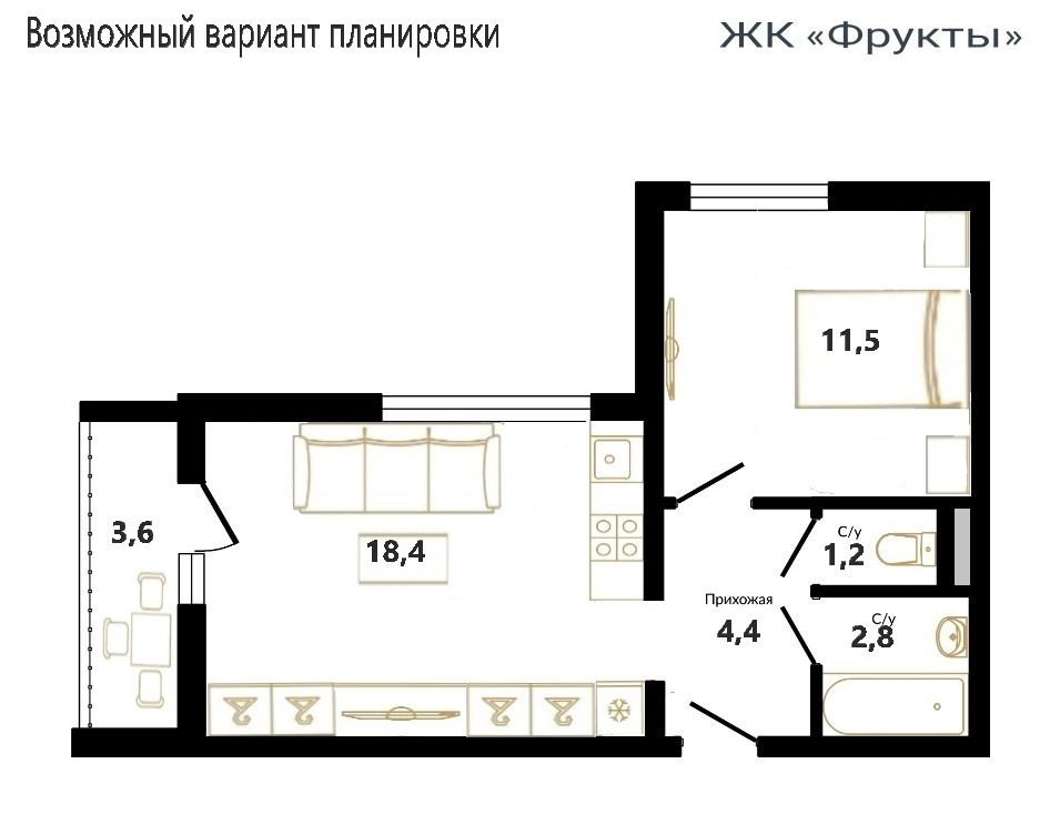 Жилая площадь 18.4 м2