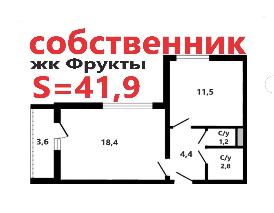 Общая площадь 41.9 м2