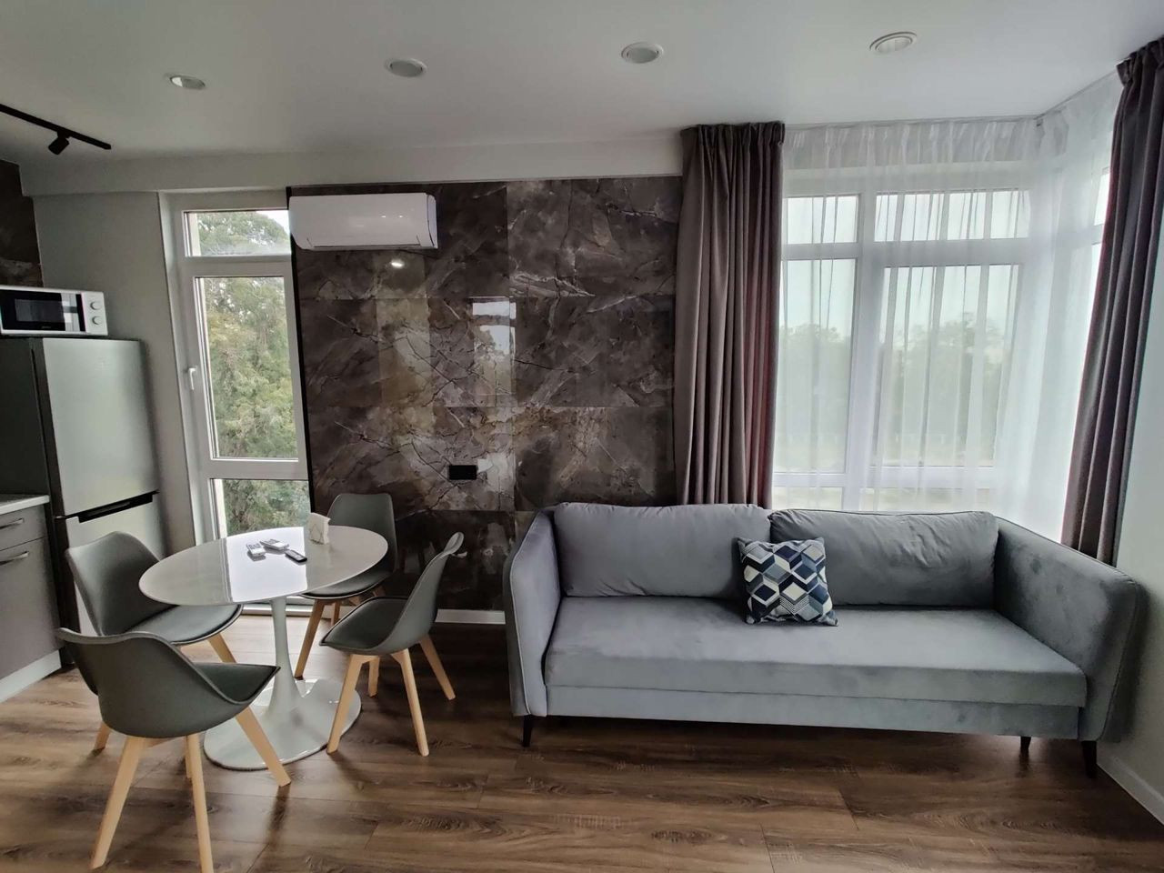 Квартира предлагает просторное и уютное жилое пространство, обладающее множеством естественного света и свежего воздуха благодаря большим окнам. Внутренняя планировка тщательно продумана для максимального комфорта и удобства. Открытая планировка гостиной и кухни создает прекрасную атмосферу для встреч с семьей и друзьями.