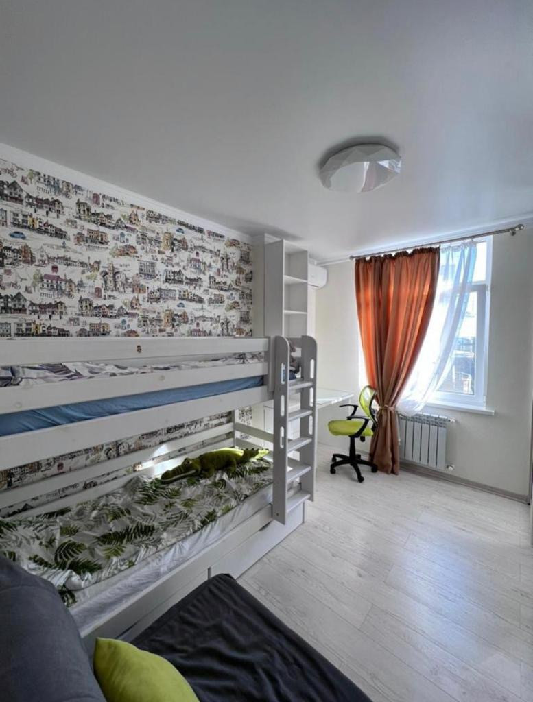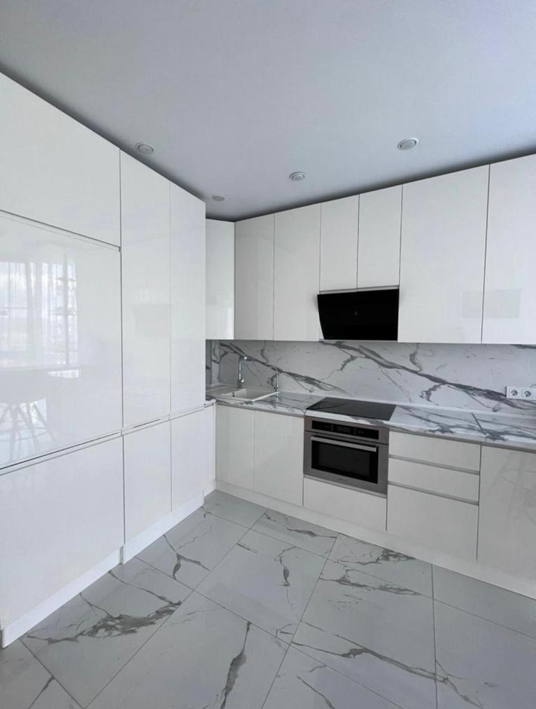 В квартире новый ремонт из качественных материалов, очень удобная планировка, вместительный шкаф-купе в прихожей, отдельная гардеробная, два санузла, просторная кухня-гостиная, спальня, детская. Встроенный кухонный гарнитур с техникой под заказ для данной квартиры. Квартира очень светлая и солнечная за счёт больших панорамных в пол окон.