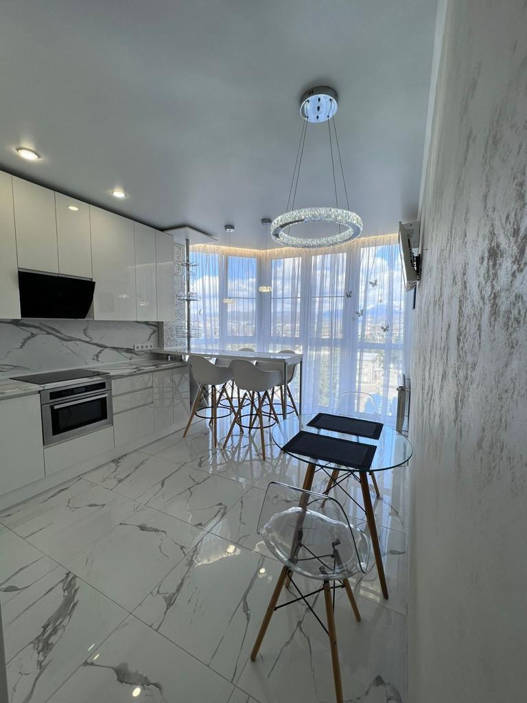 Квартира общей площадью 70 кв.м. , расположена на высоком этаже, с прекрасными рассветами и закатами, видом на горы и море, окна выходят на разные стороны.
