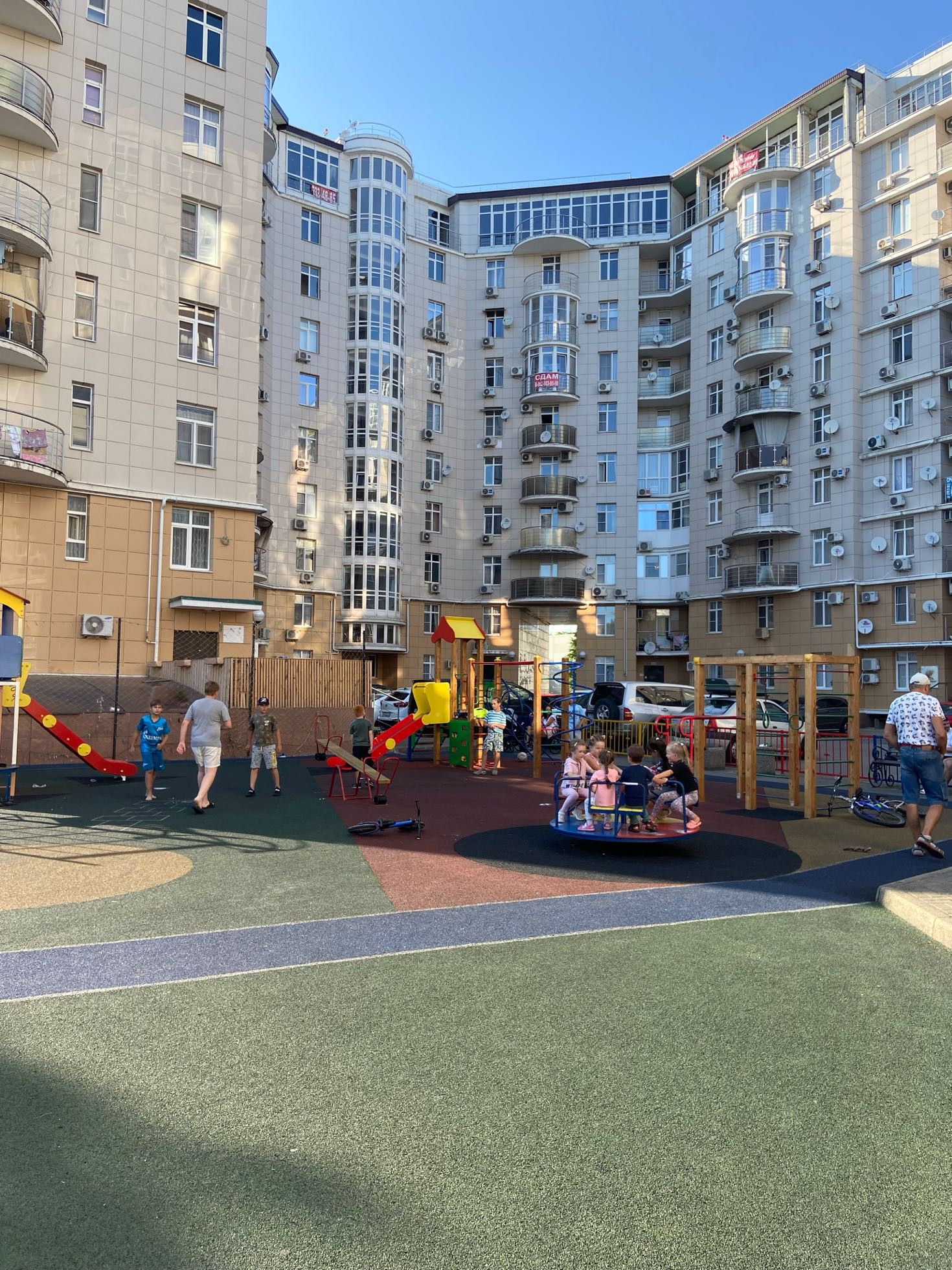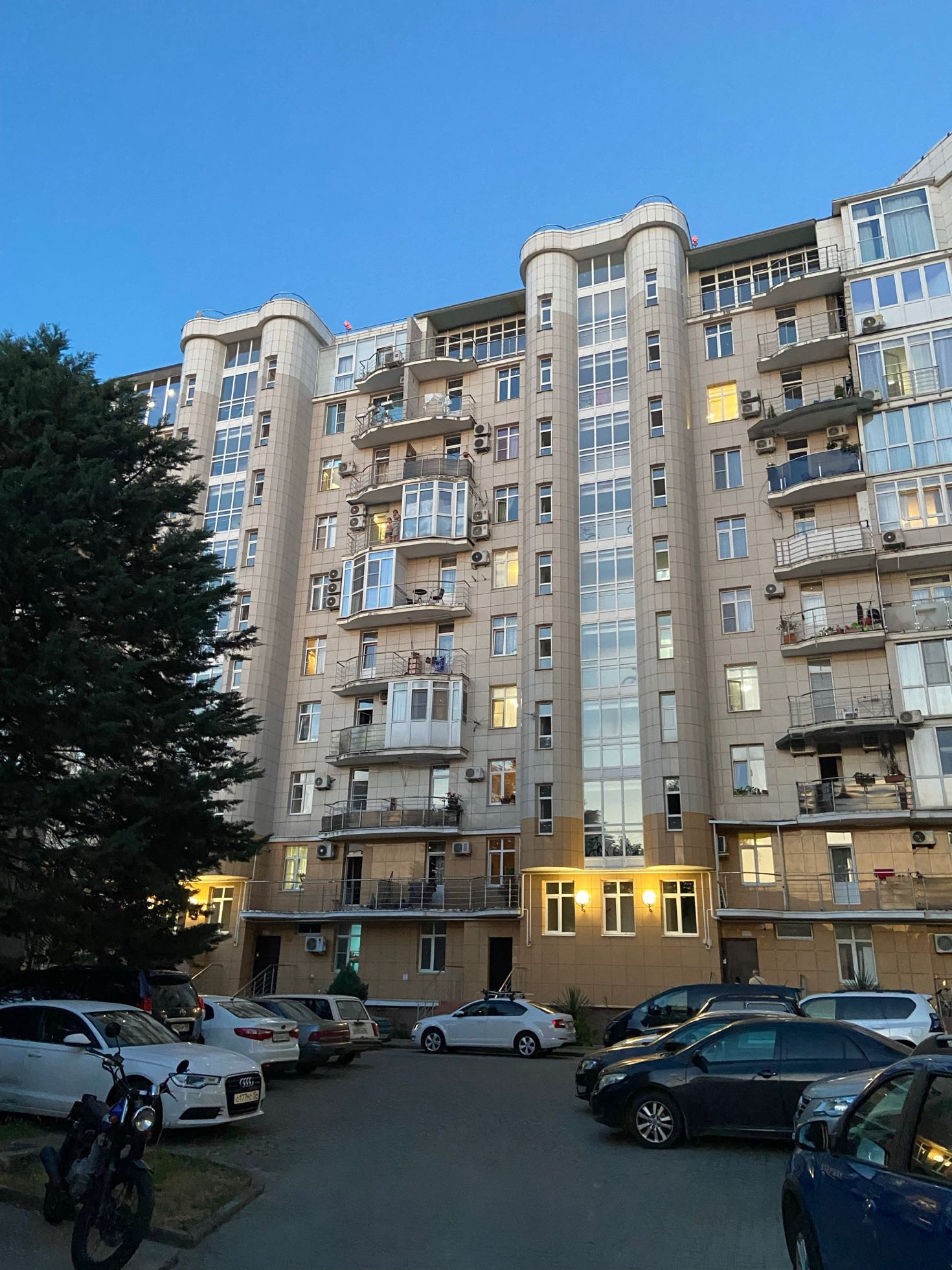 Комплекс расположен на равнине, состоит из семи корпусов, со своей большой огороженной территорией, что для Сочи большая редкость! Все под видеонаблюдением, служба-консьерж. Отличная управляющая компания. В данном корпусе есть подземный паркинг, в который опускается лифт.