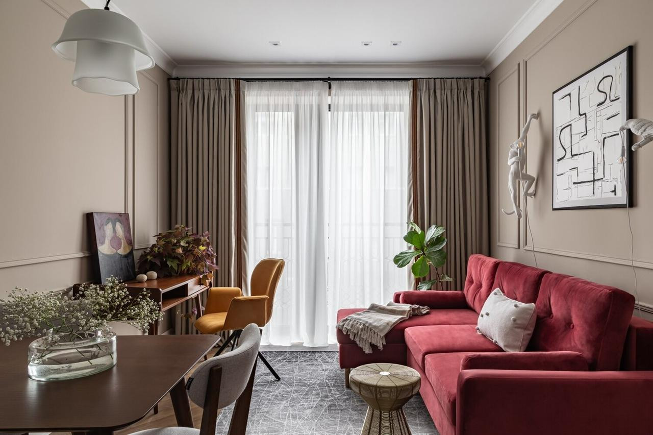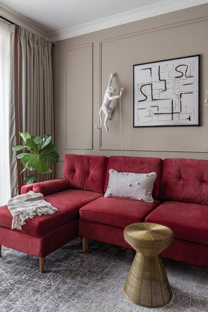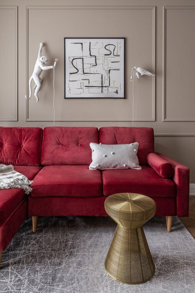 При входе в апартаменты вы сразу ощущаете атмосферу уюта и изысканности. Просторная гостиная с бордовым диваном становится центральным местом для отдыха и развлечений. Диван выглядит роскошно, обитый мягкой бархатной тканью, которая придаёт ему элегантный вид. Он прекрасно сочетается с другими элементами интерьера, создавая гармоничную атмосферу. Панорамные окна, расположенные вдоль стены гостиной, позволяют наслаждаться потрясающим видом на окружающий пейзаж. Выделенная спальня в этих апартаментах является убежищем для отдыха и релаксации. Она оформлена в нейтральных тонах, создавая спокойную и умиротворенную обстановку. Все абсолютно НОВОЕ!
