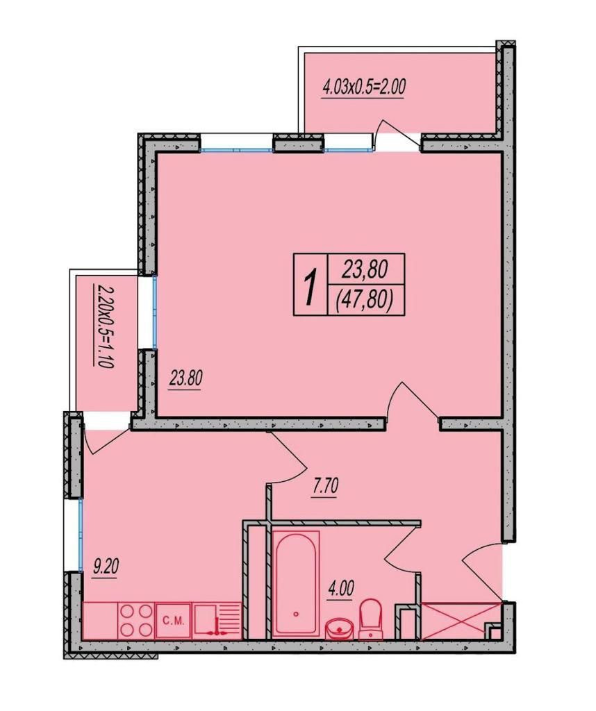 Балкон, лоджия 1 балкон