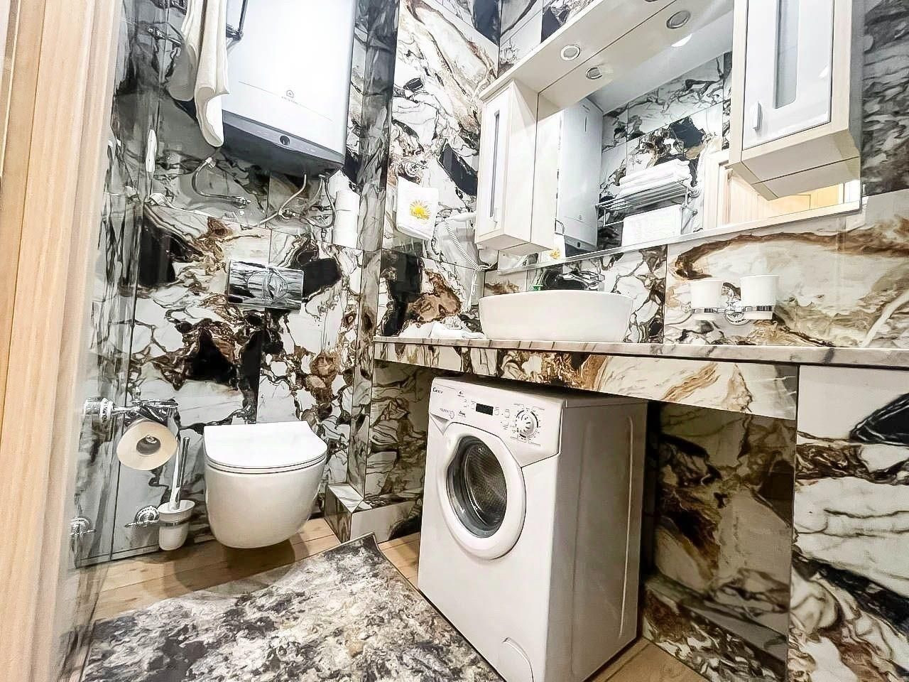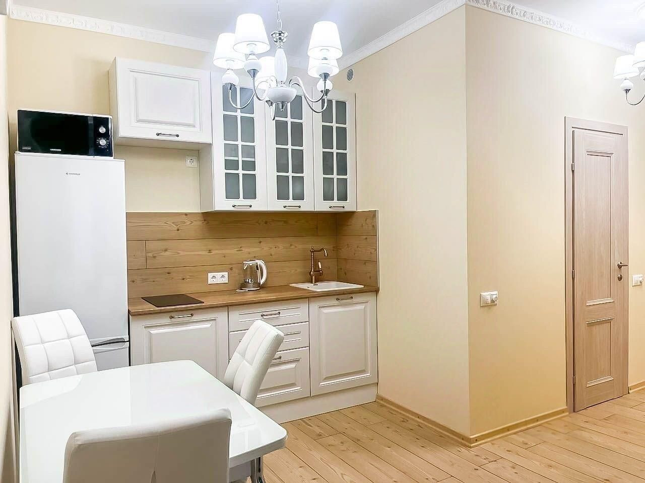 В квартире имеется вся необходимая мебель: кухонный гарнитур, холодильник, электрическая плита, микроволновая печь, диван, кровать, шкаф, журнальный столик, тумбочка, стол, телевизор, стиральная машина, прихожая, проведен интернет, кабельное ТВ.