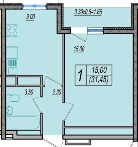 Общая площадь 31.45 м2