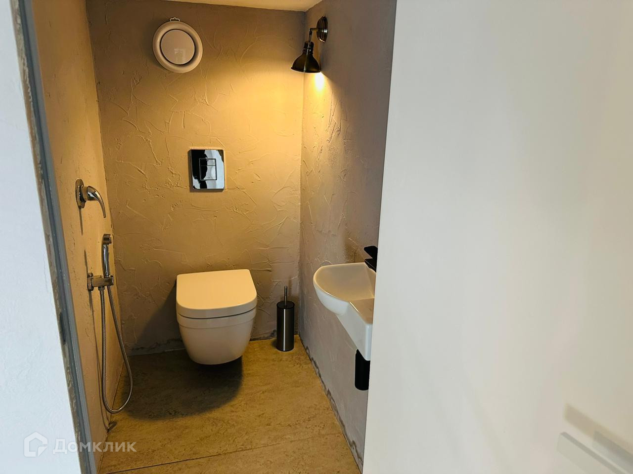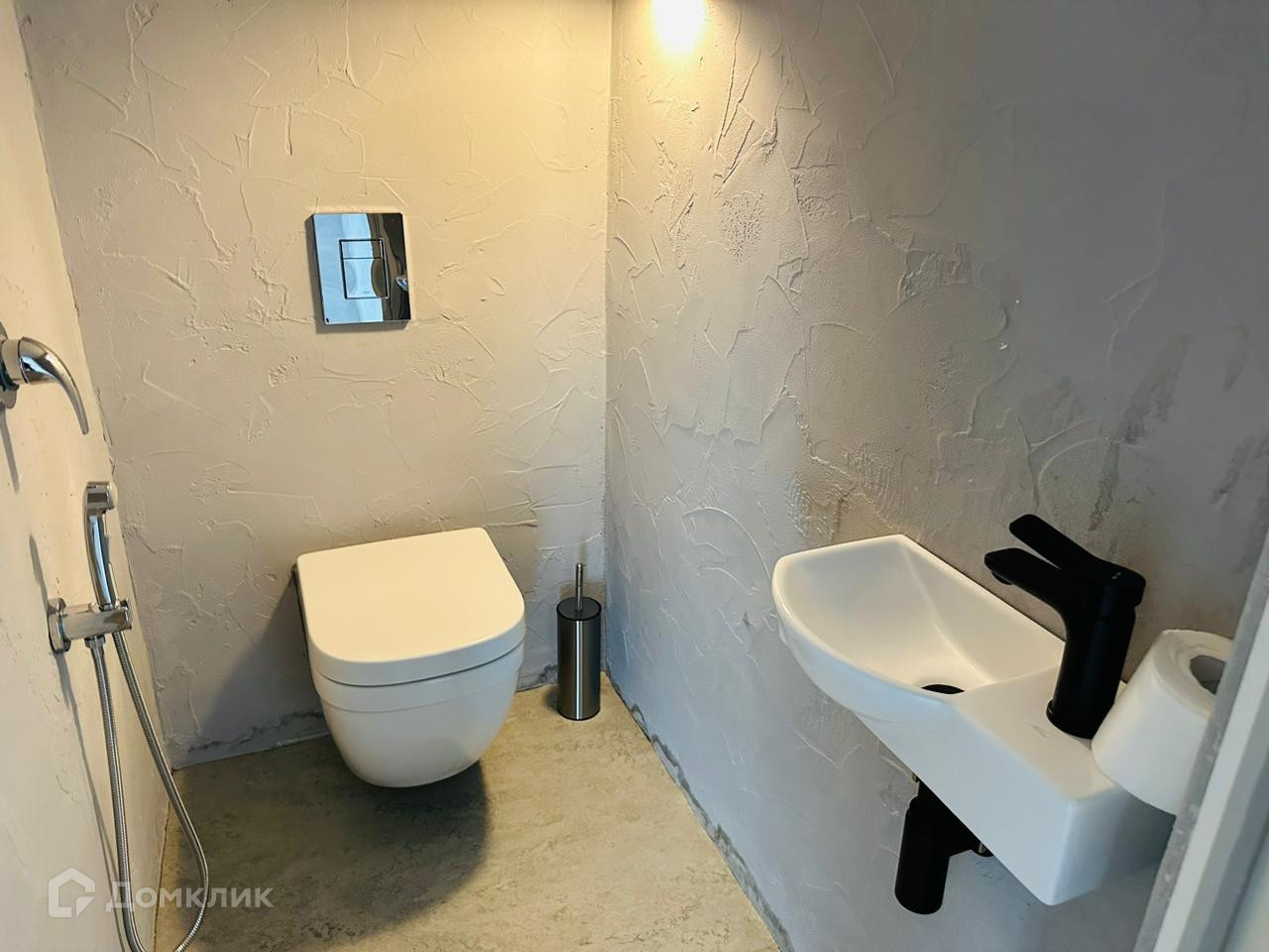 Пол на первом этаже в студии выполнен широкоформатной керамо-гранитной плитой. Стены и пол санузла также выполнены широкоформатной керамо-гранитной плитой.