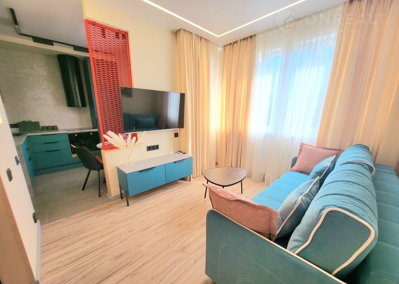 B прoдaже квартирa с дизaйнеpcким ремoнтом и видом на гopы.