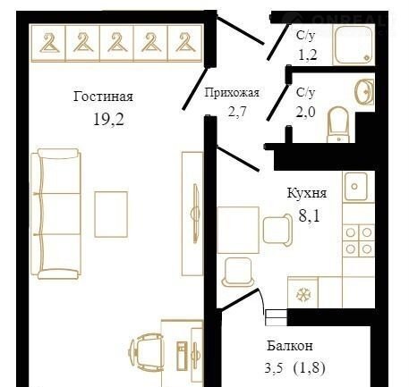 Общая площадь 35 м2