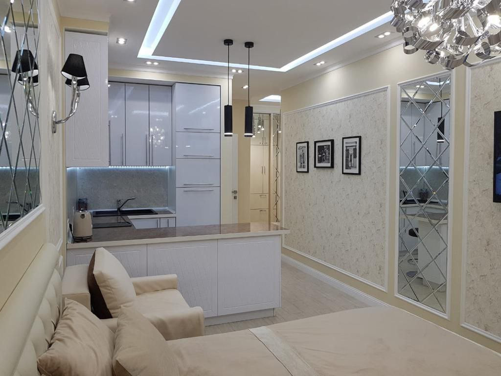В апартаменте выполнен качественный ремонт, в классическом стиле, что очень хорошо влияет на заполняемость и стоимость суточного проживания.