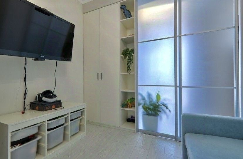 В квартире выполнен дизайнерский ремонт, который придает ей особый шик и уют. Санузел совмещен, что является удобным решением для экономии пространства. Из окон открывается прекрасный вид на двор, водоем, улицу, парк и лес, создавая атмосферу уединения и спокойствия.