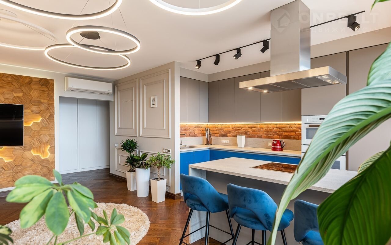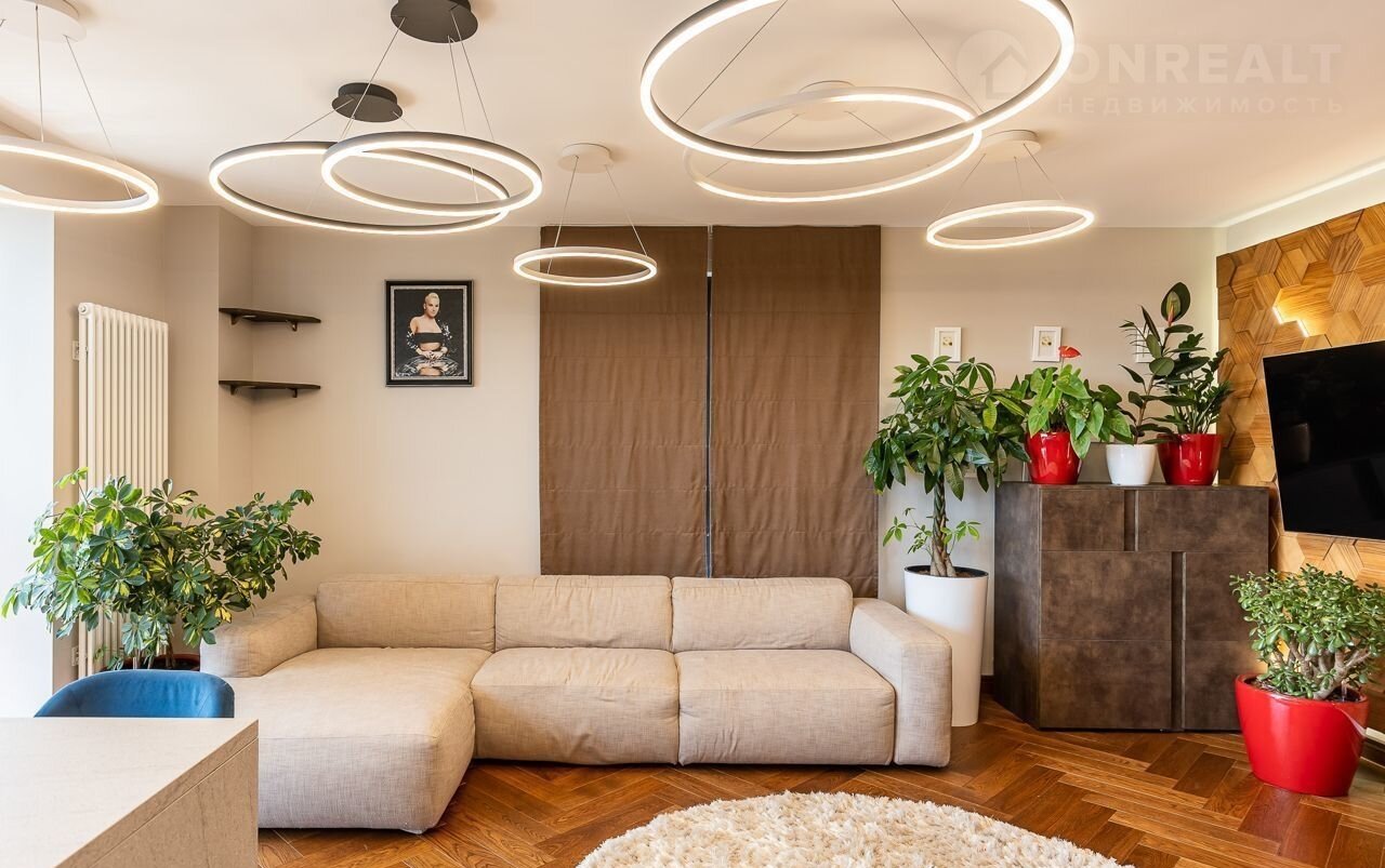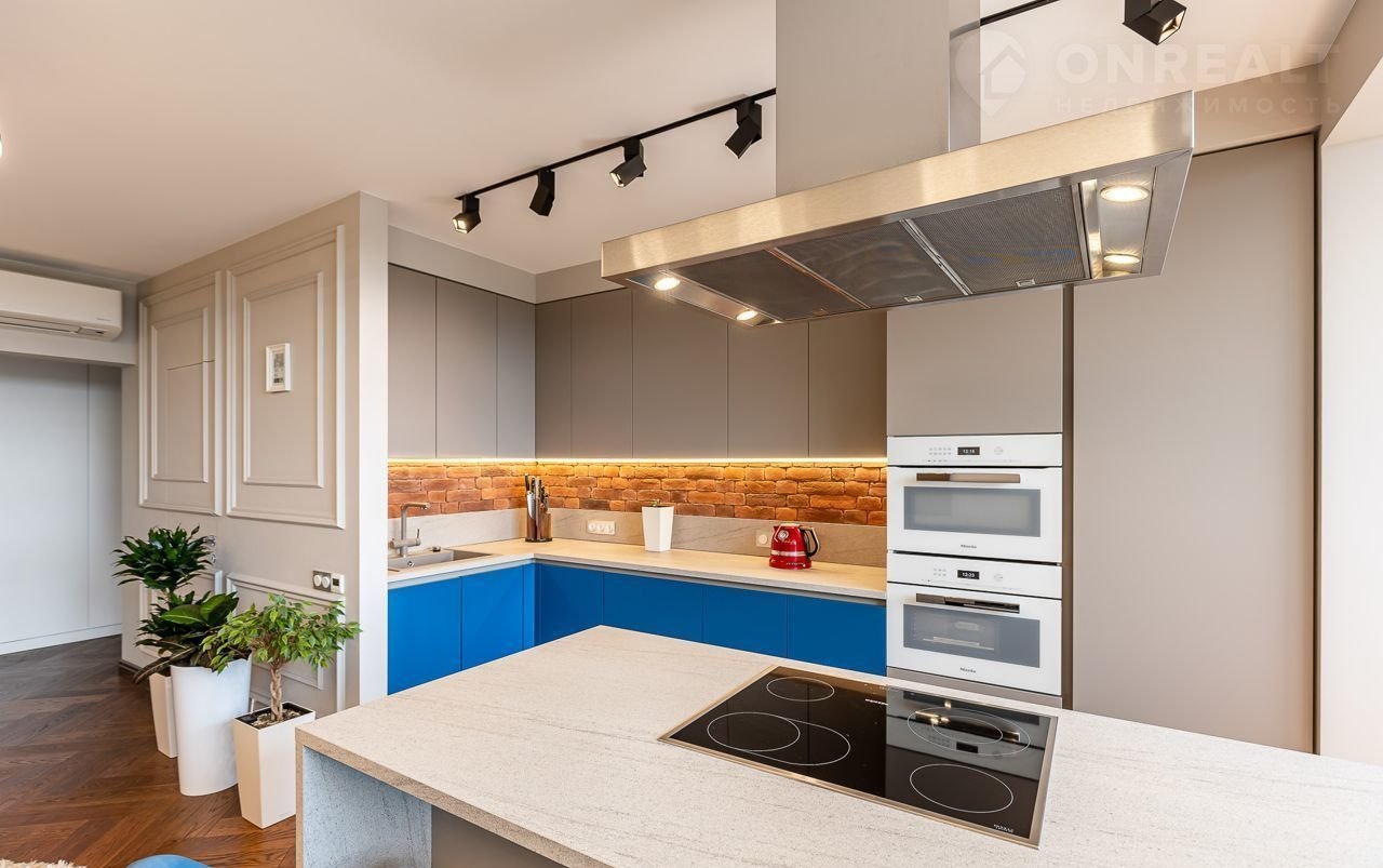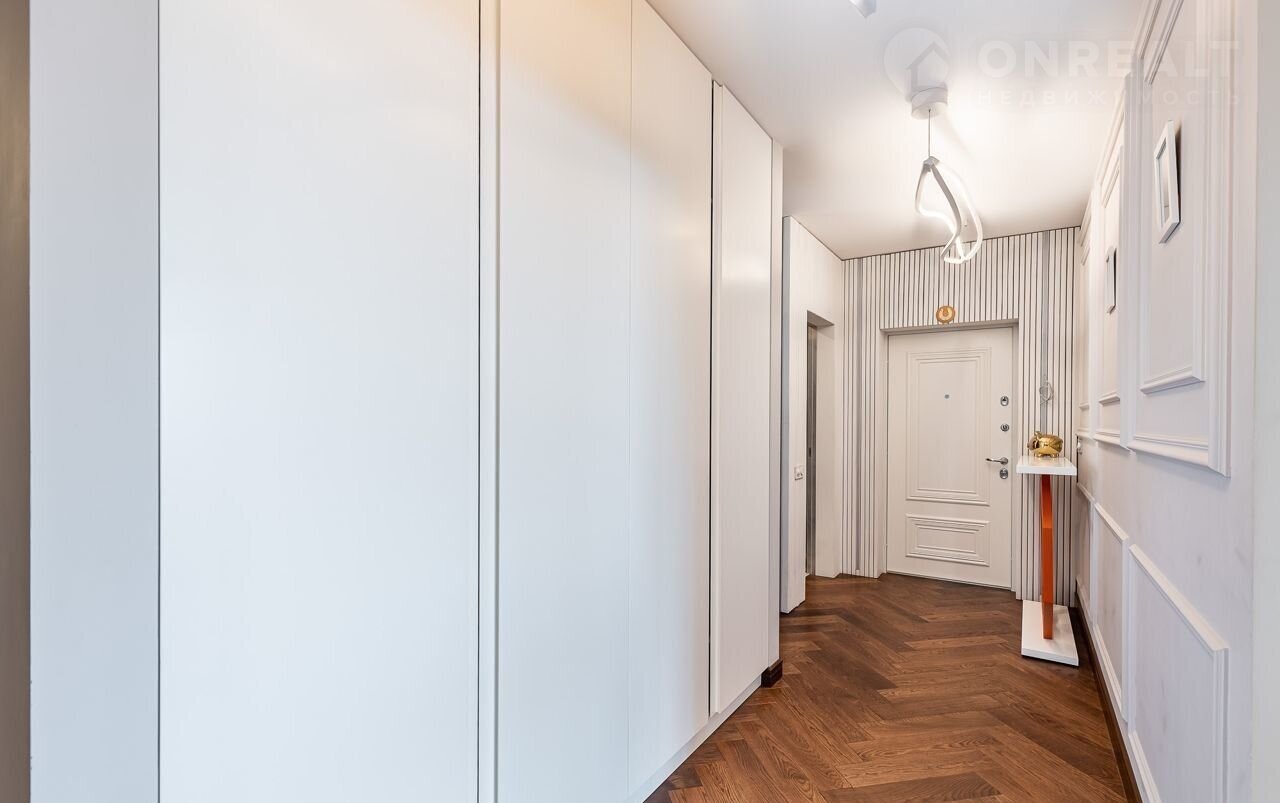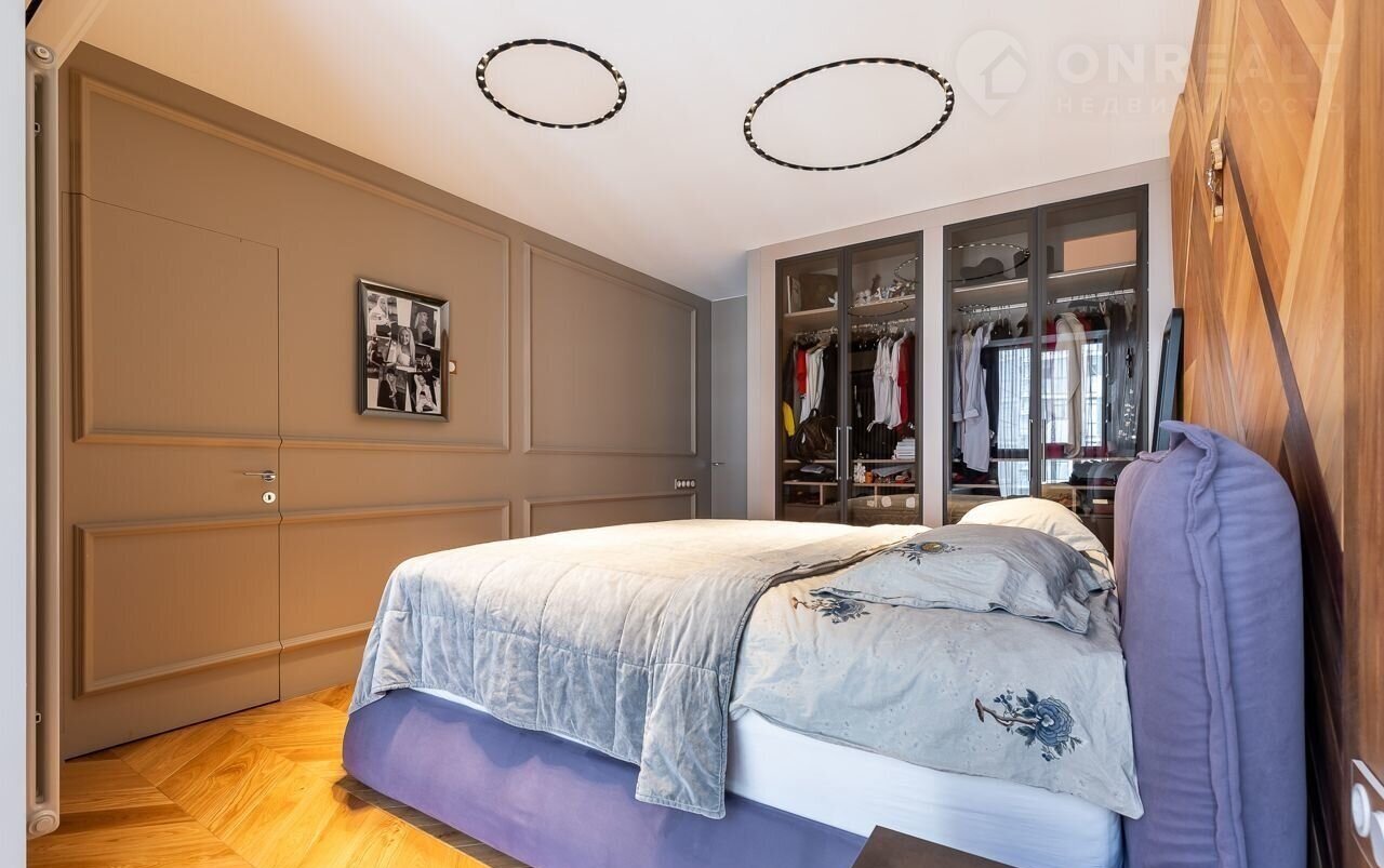 Однокомнатная квартира, большая кухня-гостиная и спальня с гардеробной. Квартира очень светлая и просторная.