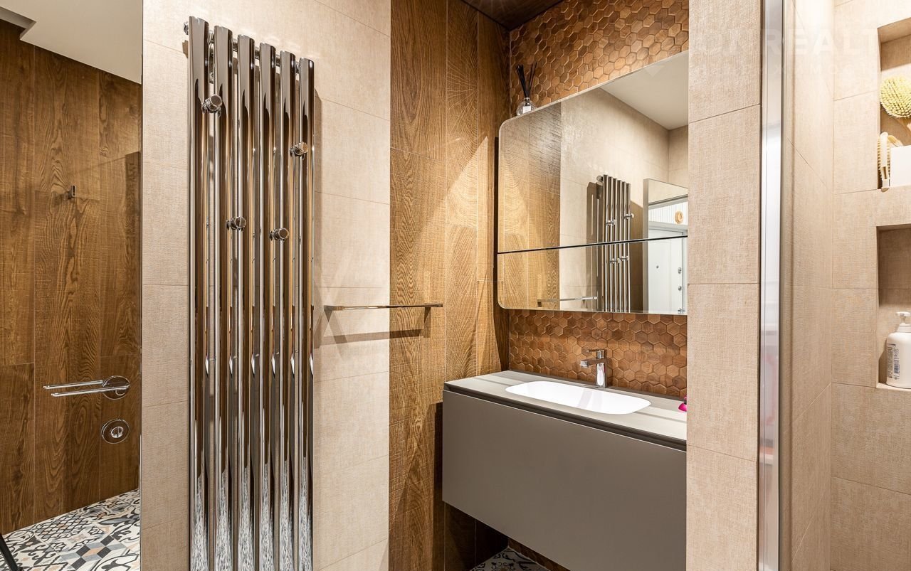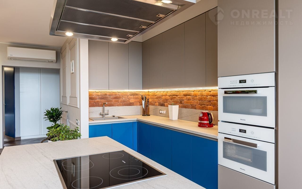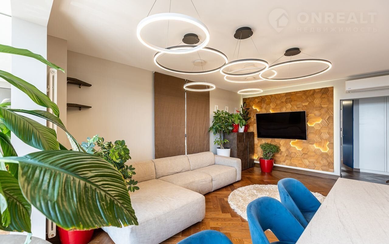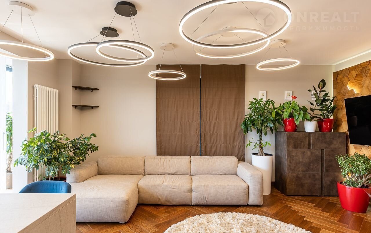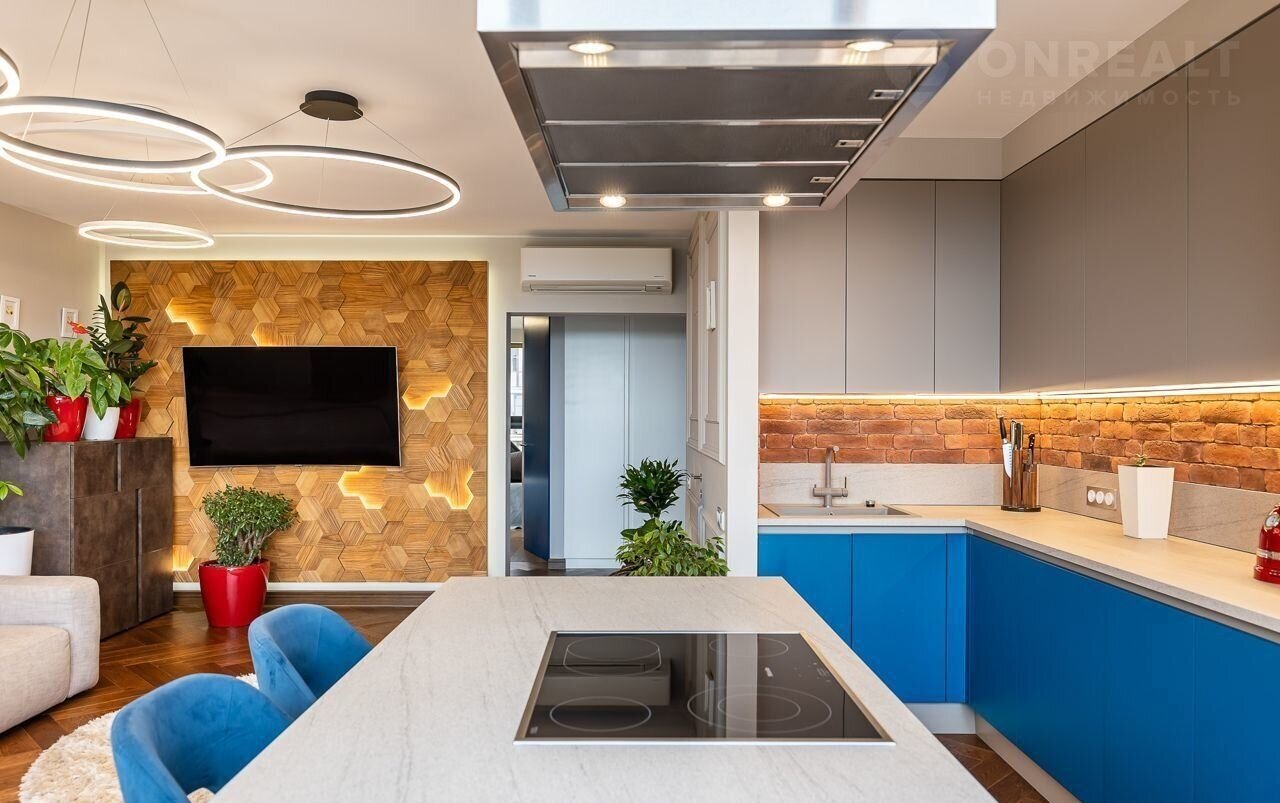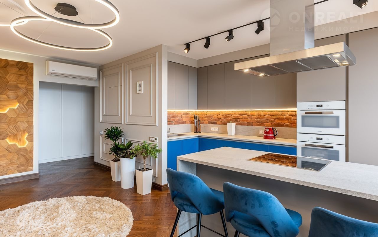 Однокомнатная квартира, большая кухня-гостиная и спальня с гардеробной. Квартира очень светлая и просторная.
