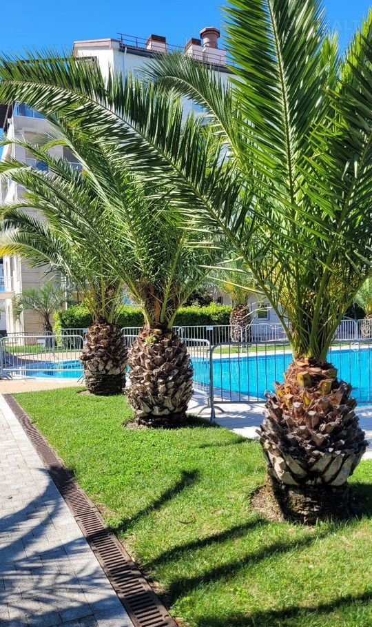 На закрытой, охраняемой территории с дизайнерским озеленением расположены- взрослые и детские бассейны, детские и спортивные площадки, зоны отдыха и природных соляриев. Изящная садово-парковая архитектура, беседки, декоративные пруды и фонтаны создают атмосферу уюта и эстетики всей территории данного комплекса.