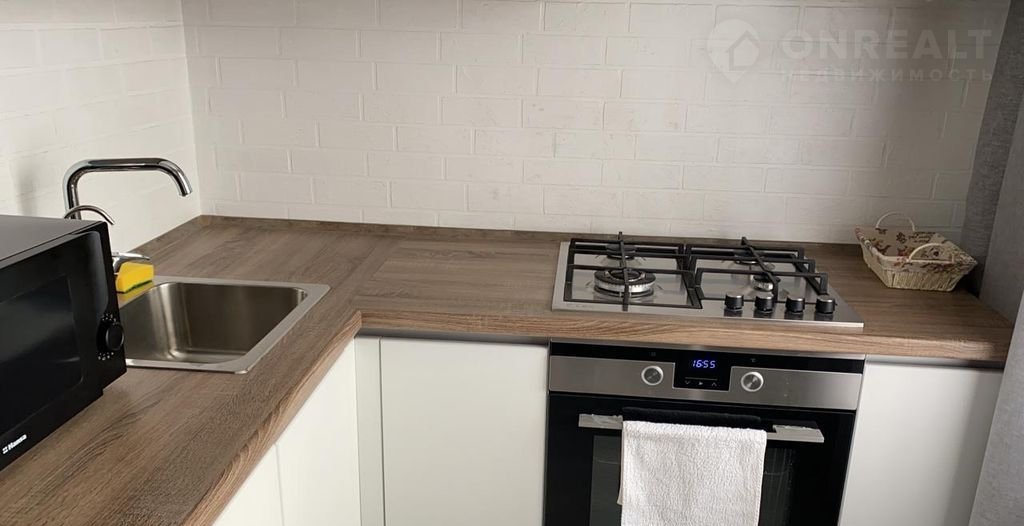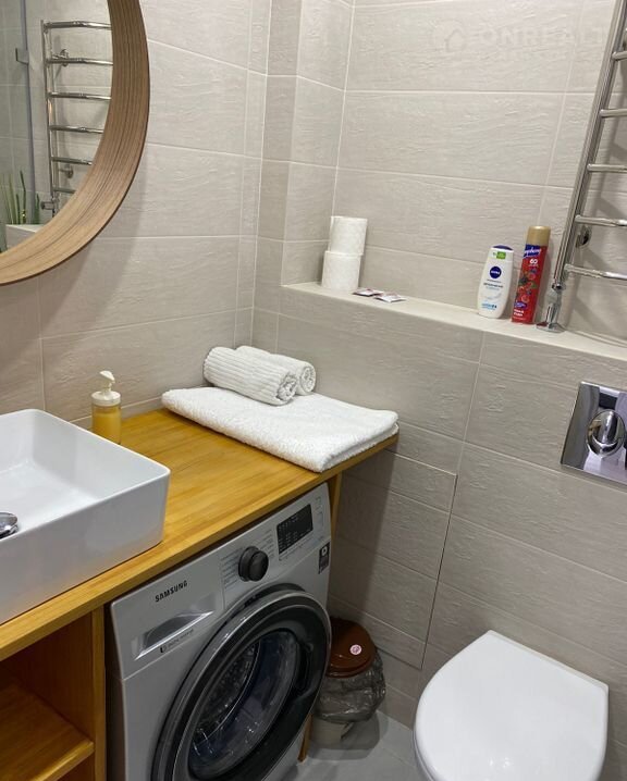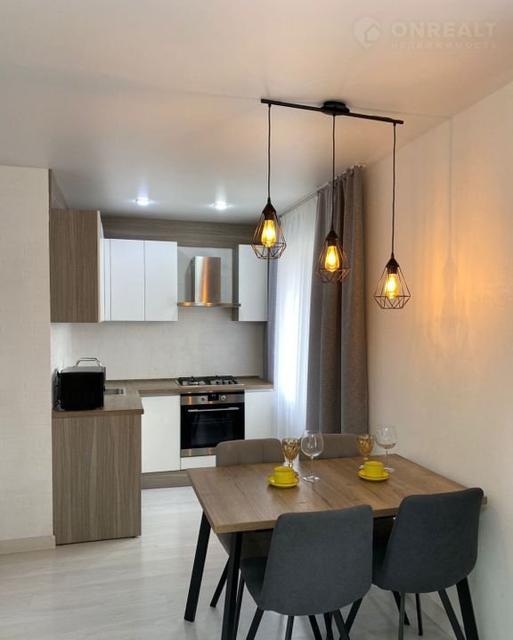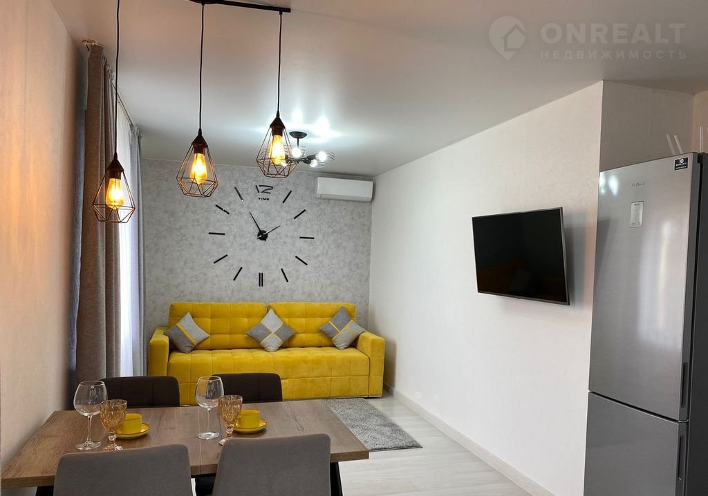 Квартира выполнена в современном стиле с качественной отделкой. На полу — ламинат, в ванной комнате — плитка. Кухня оборудована всей необходимой техникой: холодильник, плита, духовой шкаф. В спальне установлен встроенный шкаф, что позволяет эффективно использовать пространство.
