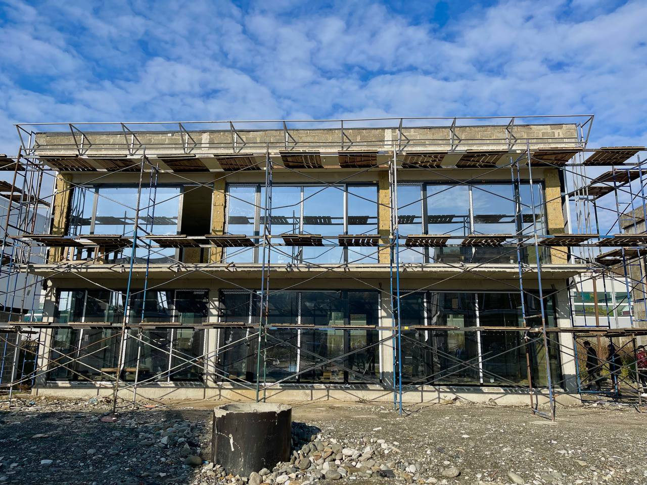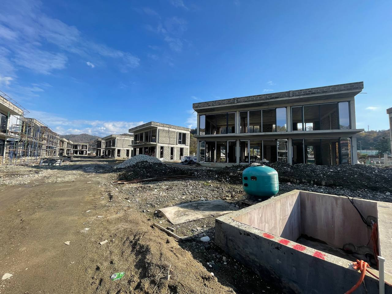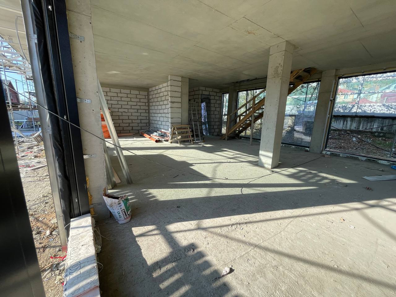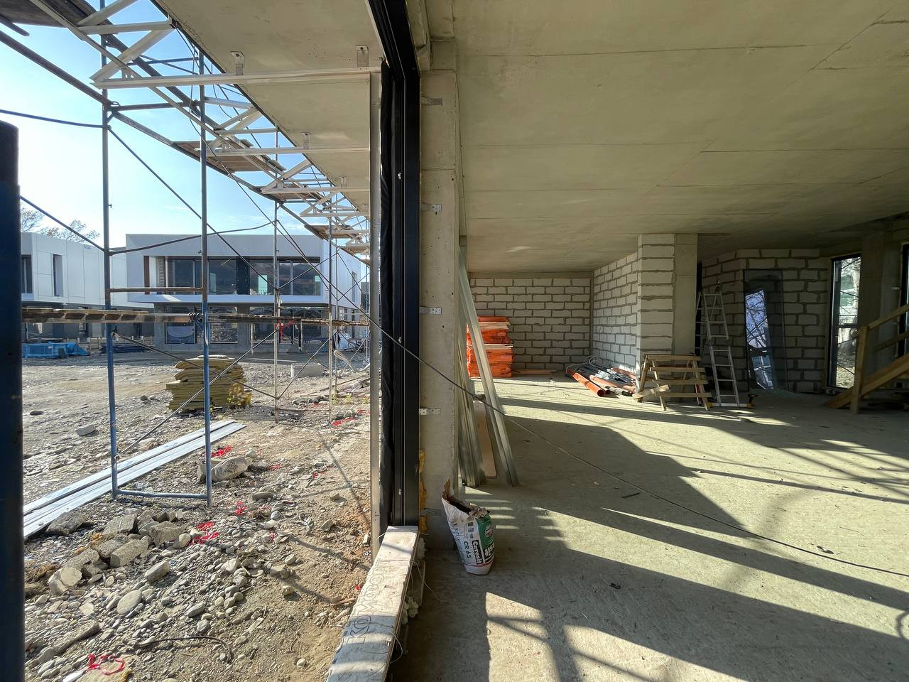 Конструктивные части здания выполнены по всем требованиям проектирования для сейсмических районов: фундамент — сваи/монолитная плита, несущая система здания - ж/б каркас, заполнение стен — керамзитоблок. Все стены дома по периметру утеплены фасадной базальтовой ватой, армированной ПВХ сеткой, с последующей отделкой декоративной штукатуркой "короед". Проводилась фотосъемка всех этапов строительства, в том числе важных конструктивных узлов здания.