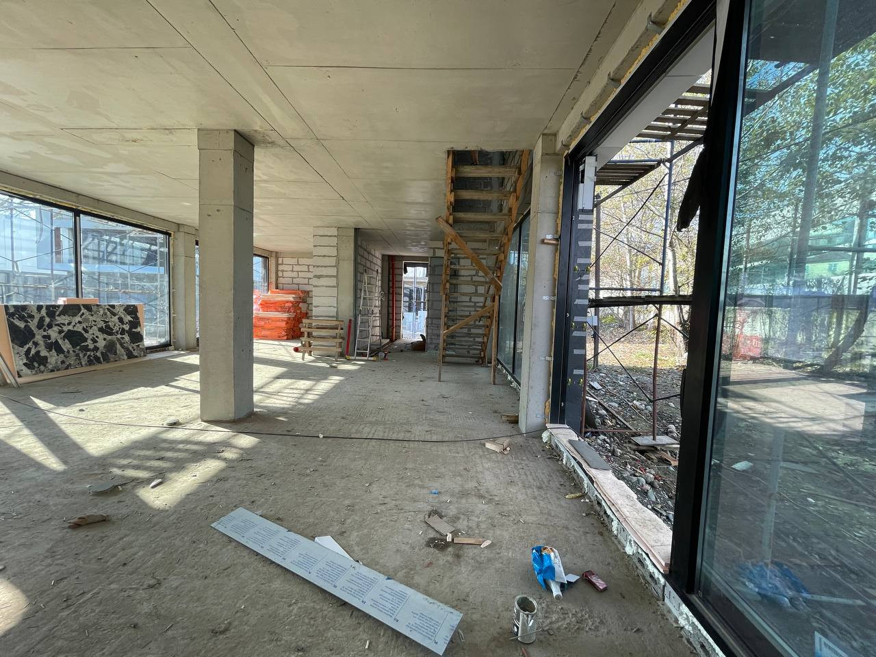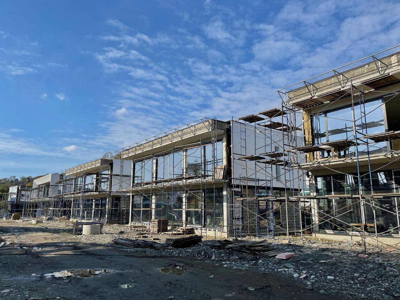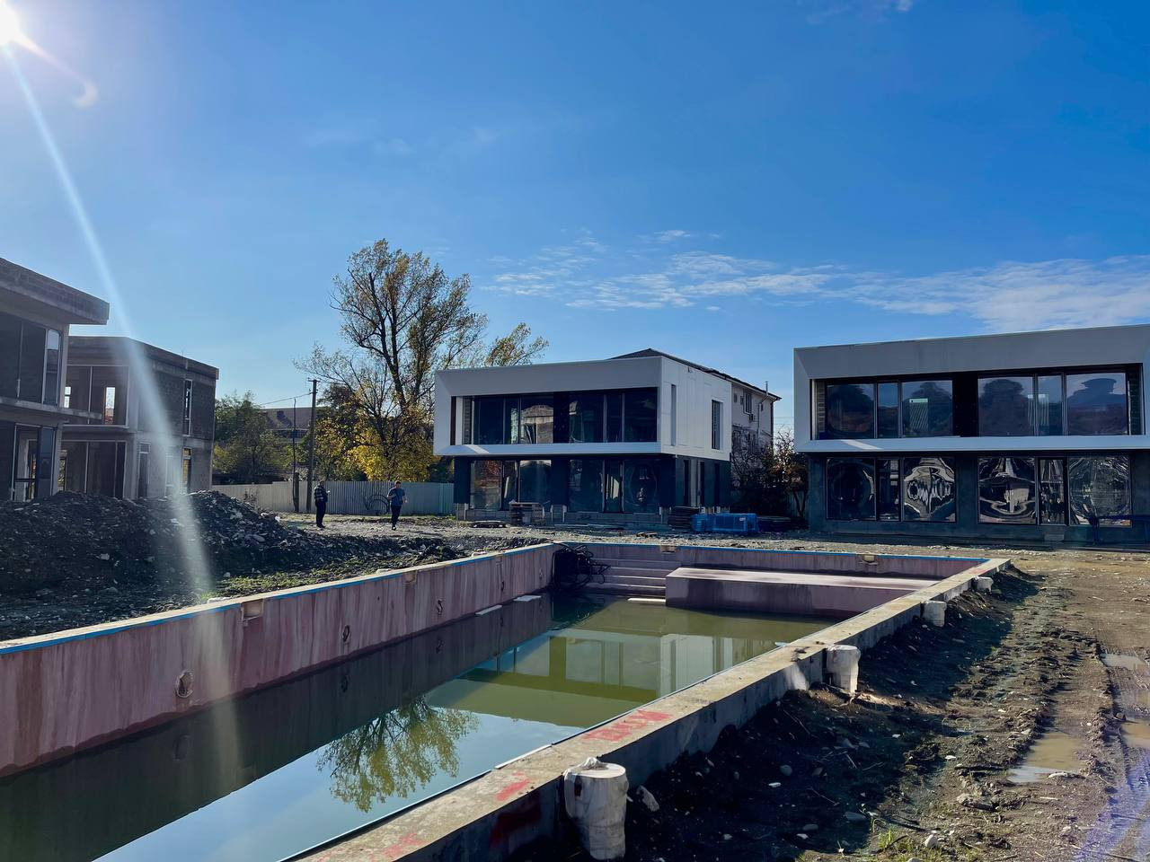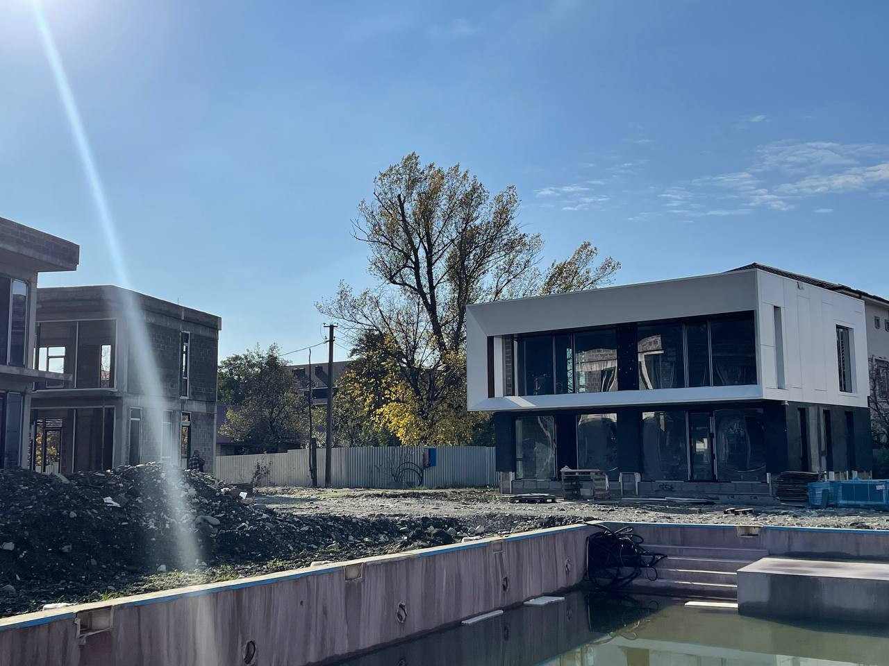 Конструктивные части здания выполнены по всем требованиям проектирования для сейсмических районов: фундамент — сваи/монолитная плита, несущая система здания - ж/б каркас, заполнение стен — керамзитоблок. Все стены дома по периметру утеплены фасадной базальтовой ватой, армированной ПВХ сеткой, с последующей отделкой декоративной штукатуркой "короед". Проводилась фотосъемка всех этапов строительства, в том числе важных конструктивных узлов здания.