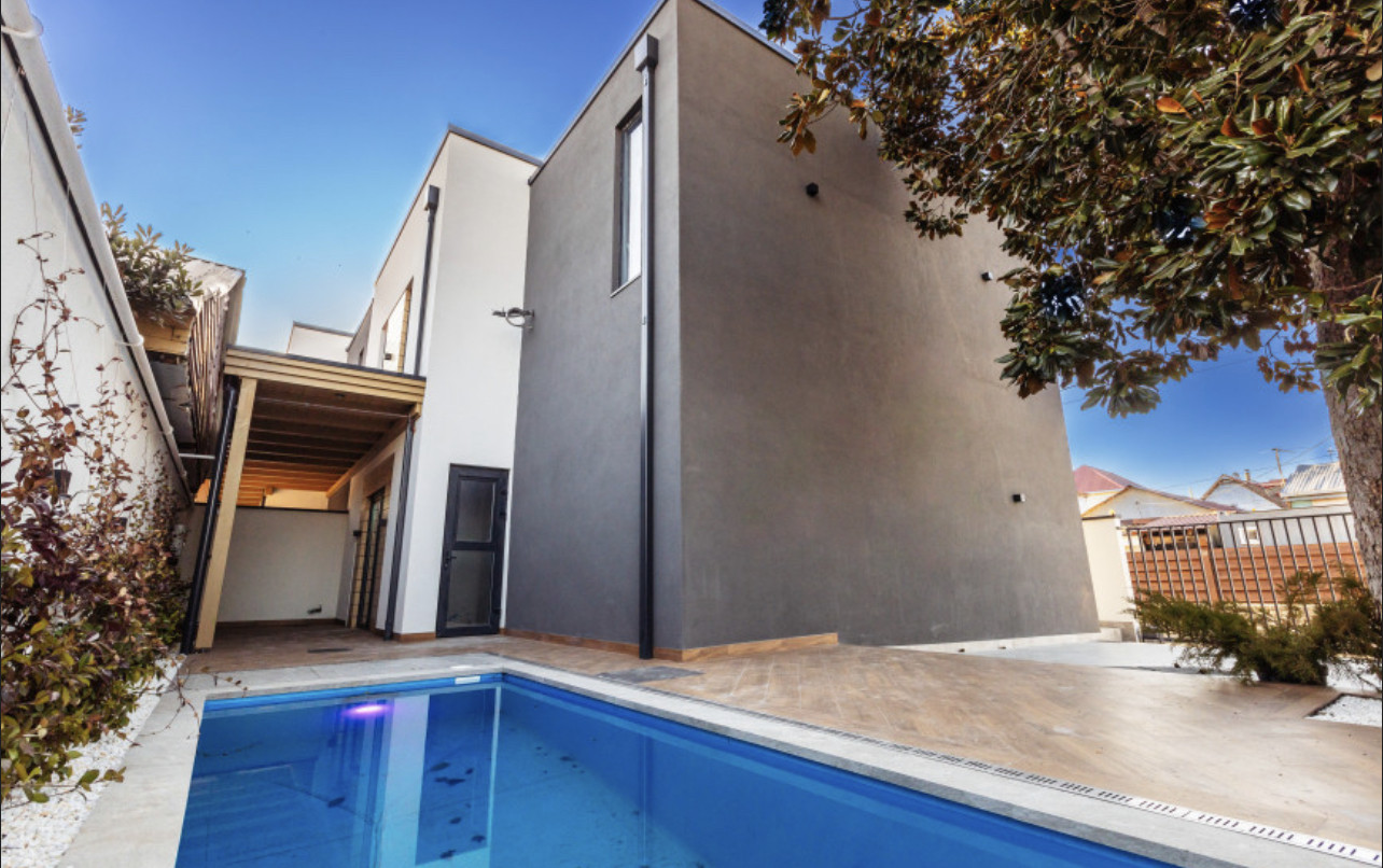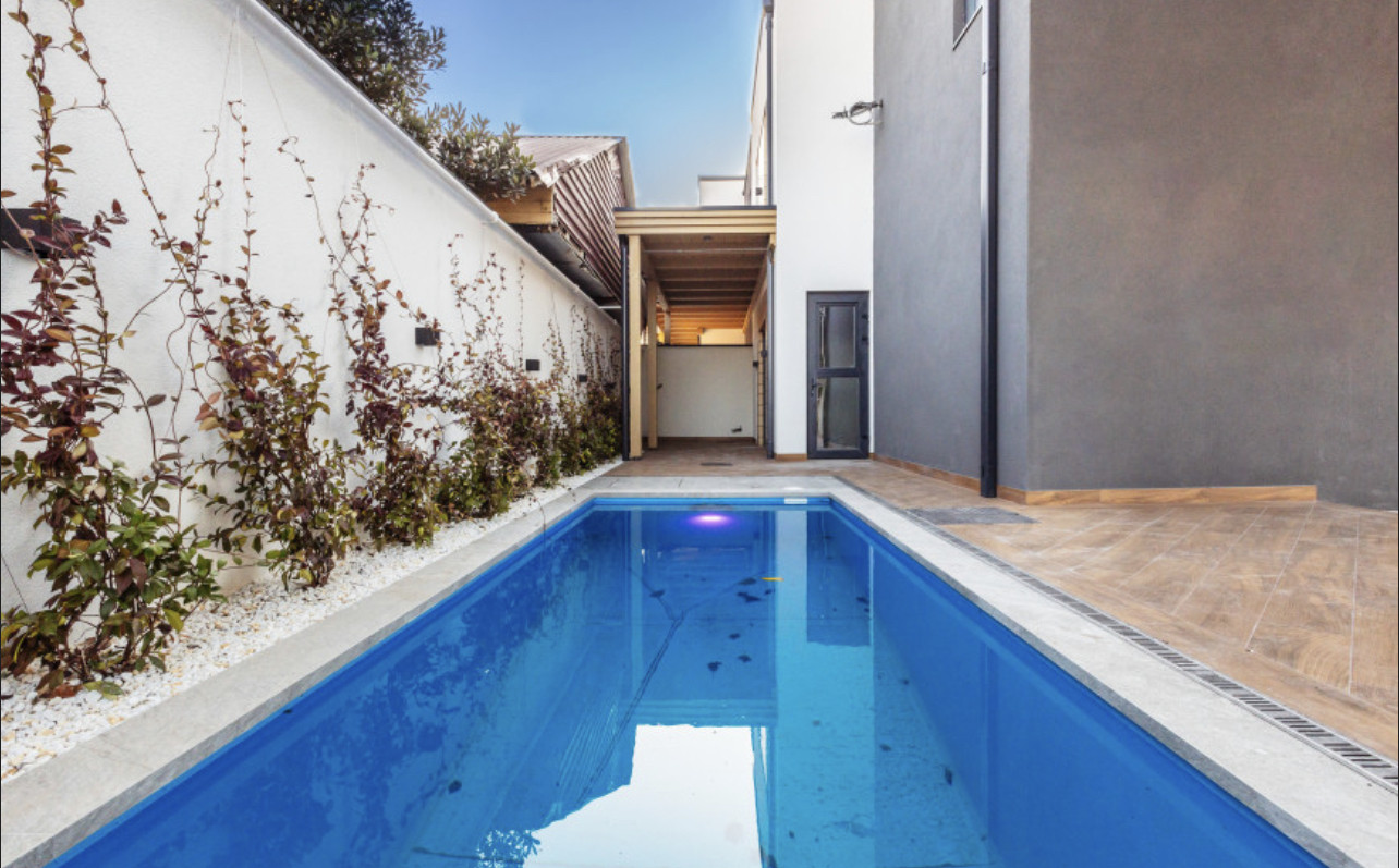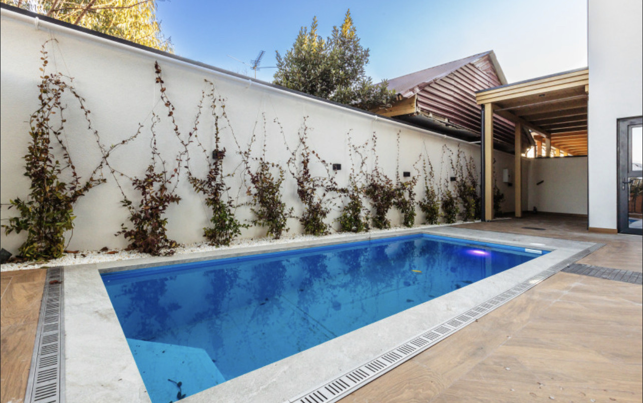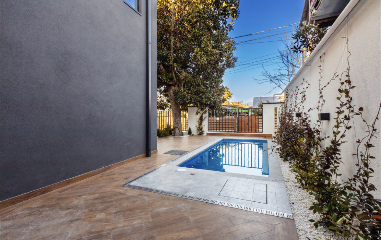 У таунхауса персональный бассейн, зона отдыха и барбекю, а также 2 парковочных места