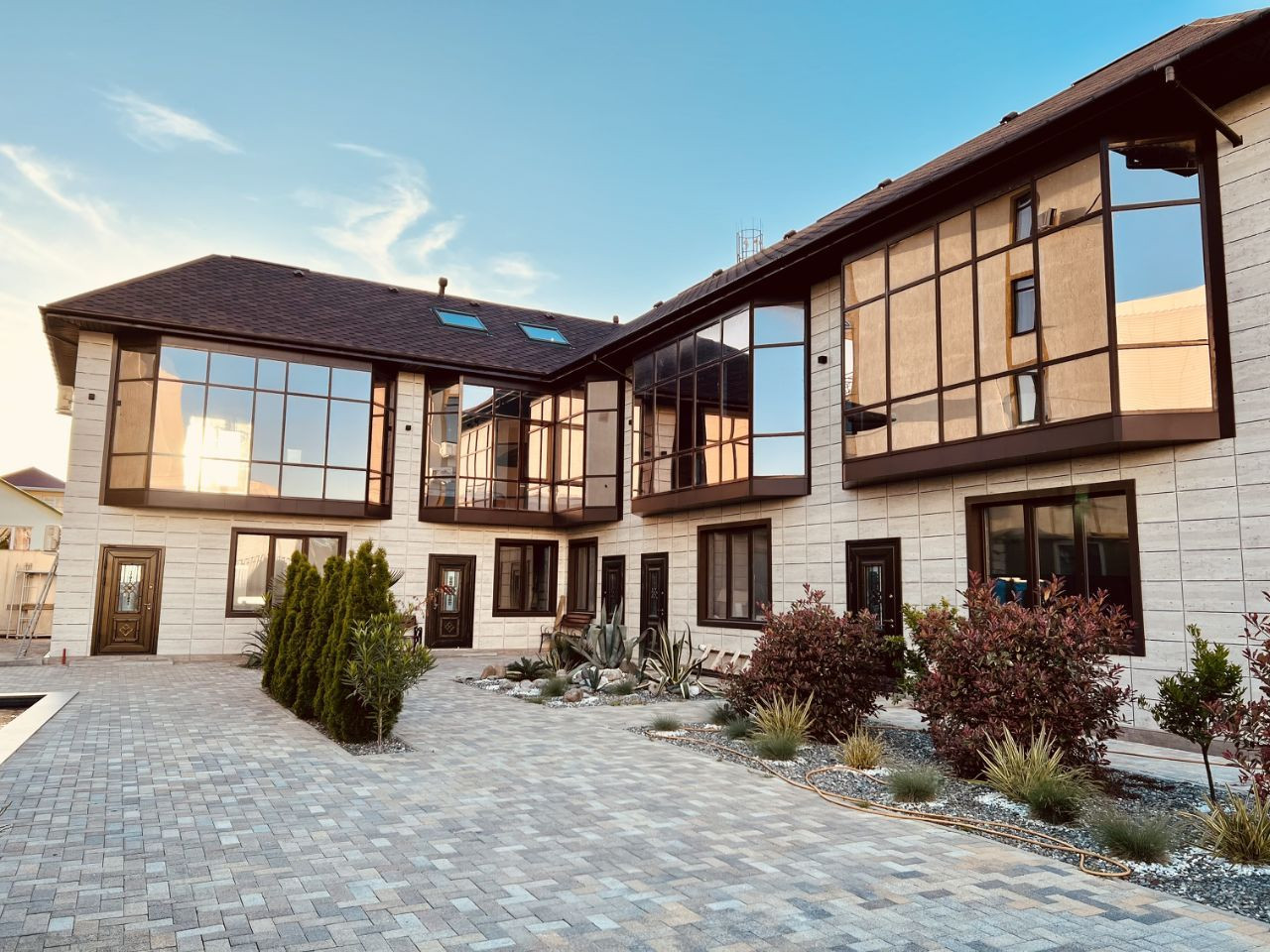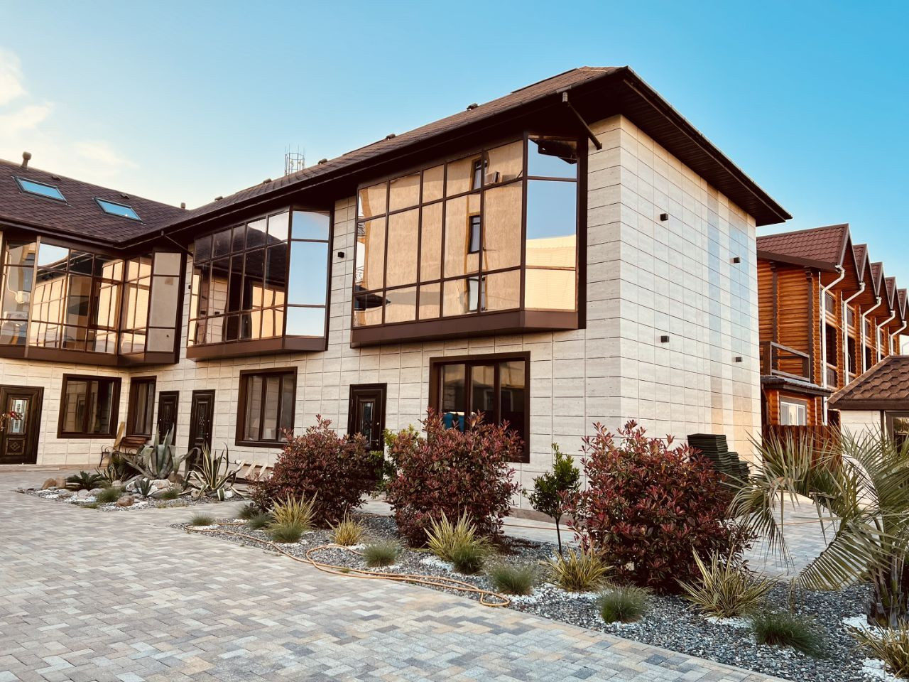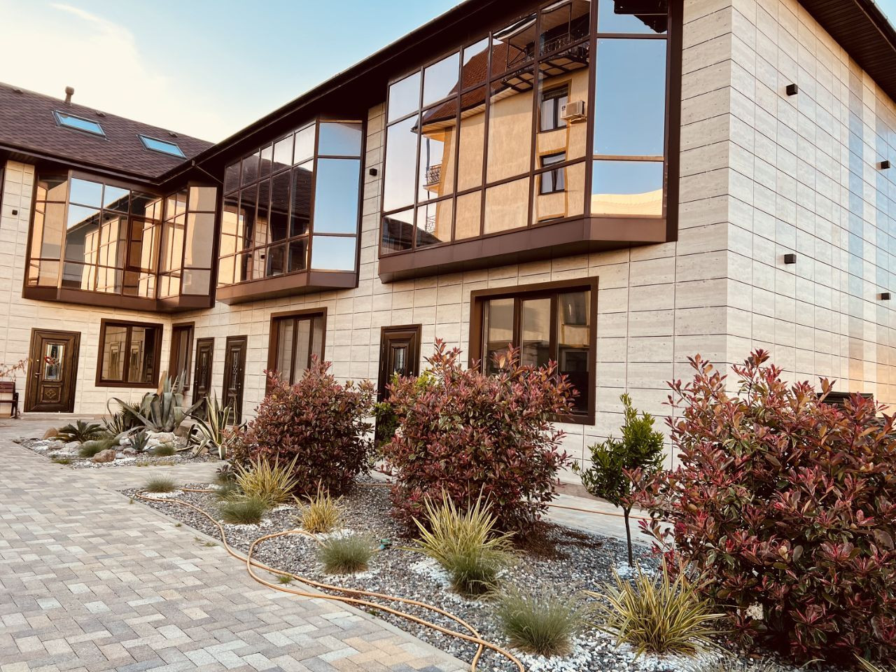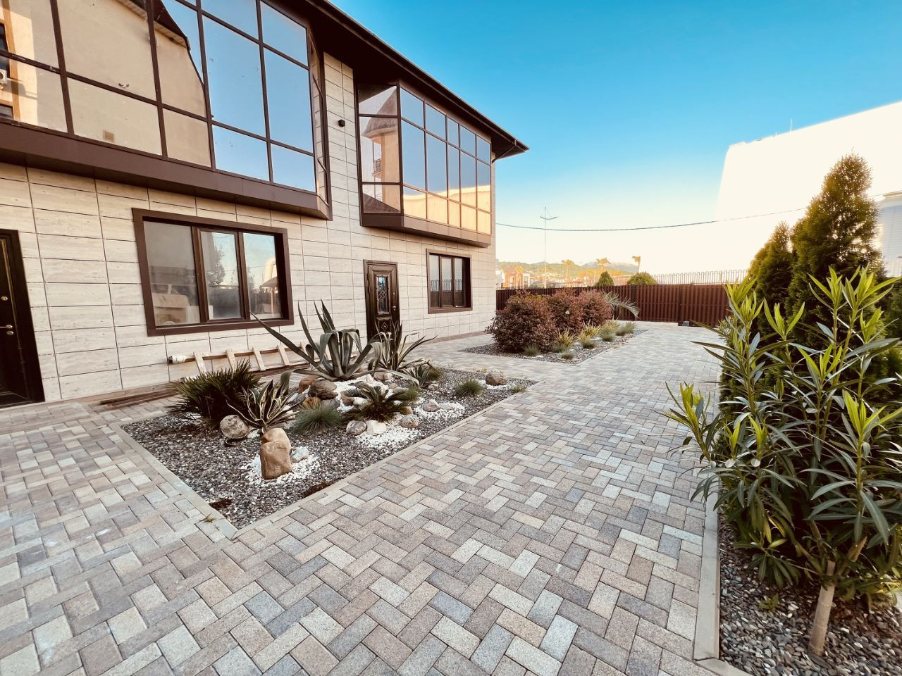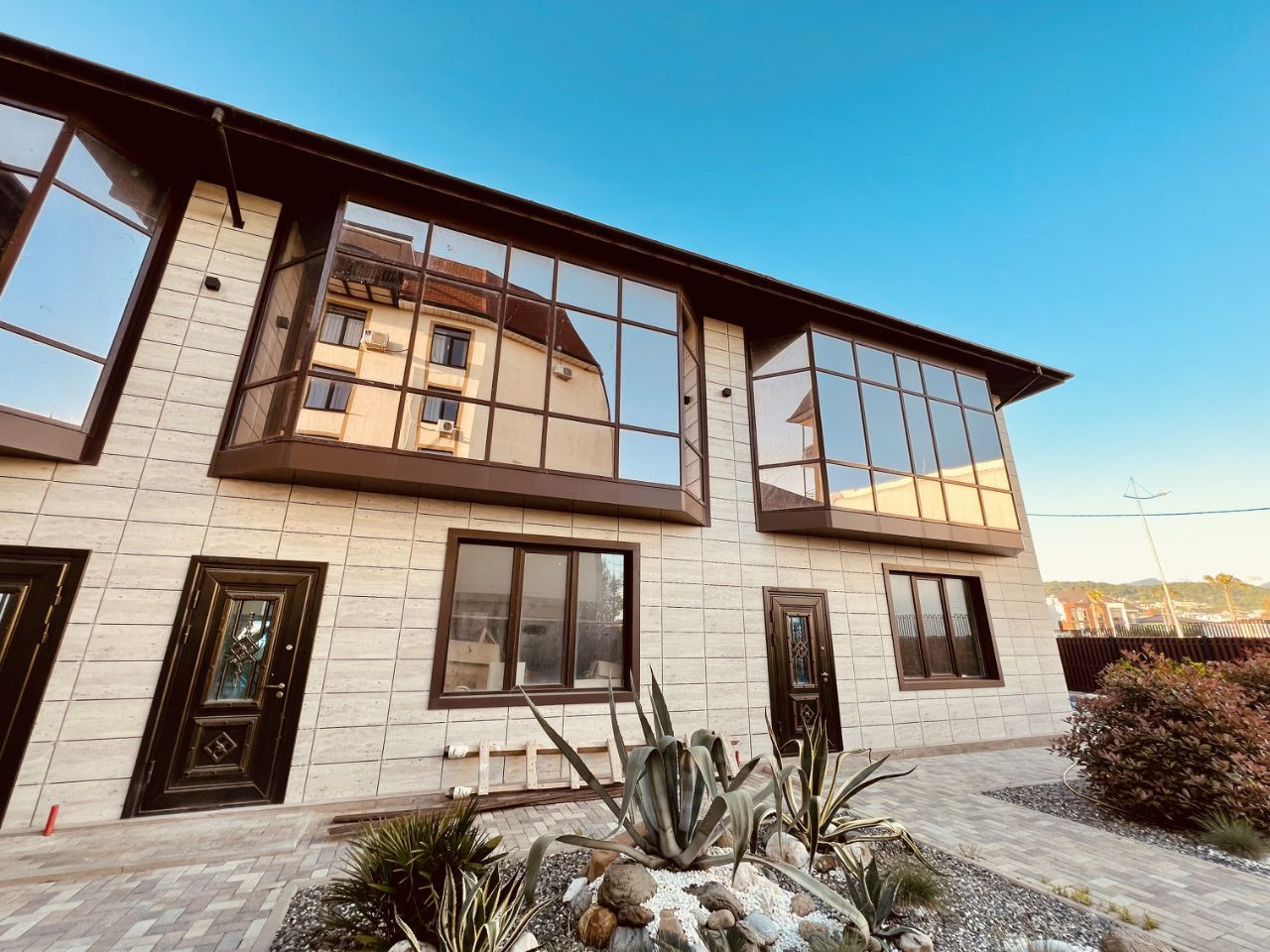 Этот дом находится на общей территории в 7 соток и расположен напротив гимнастического центра Алины Кабаевой в пгт Сириус.