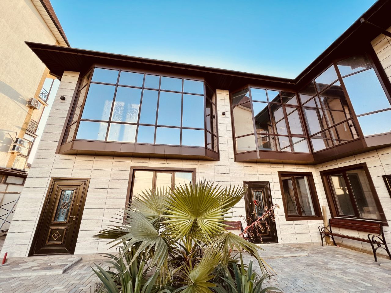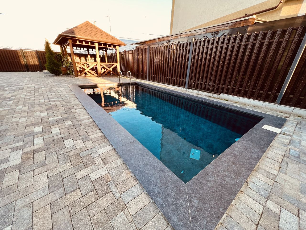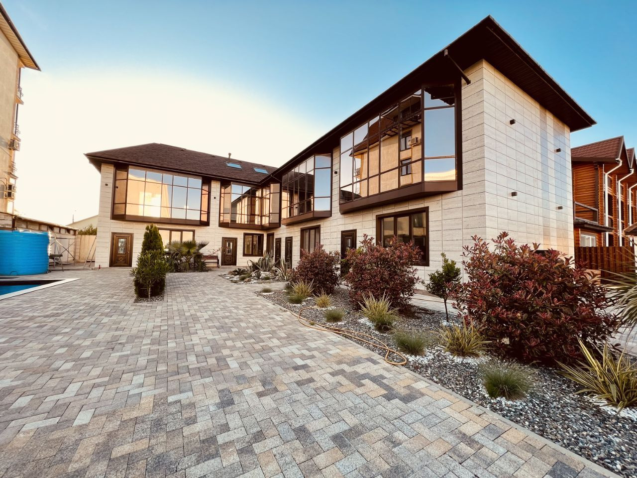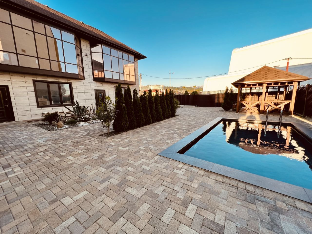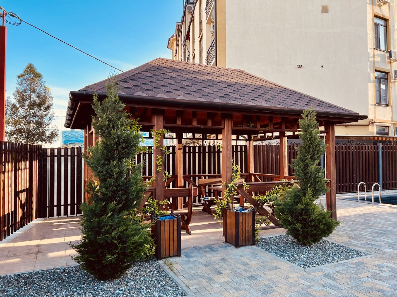 На территории комплекса есть все необходимое для комфортной жизни: бассейн, где можно наслаждаться прохладой в жаркие дни, детская площадка, где дети могут играть и взрослые могут сидеть и расслабляться.