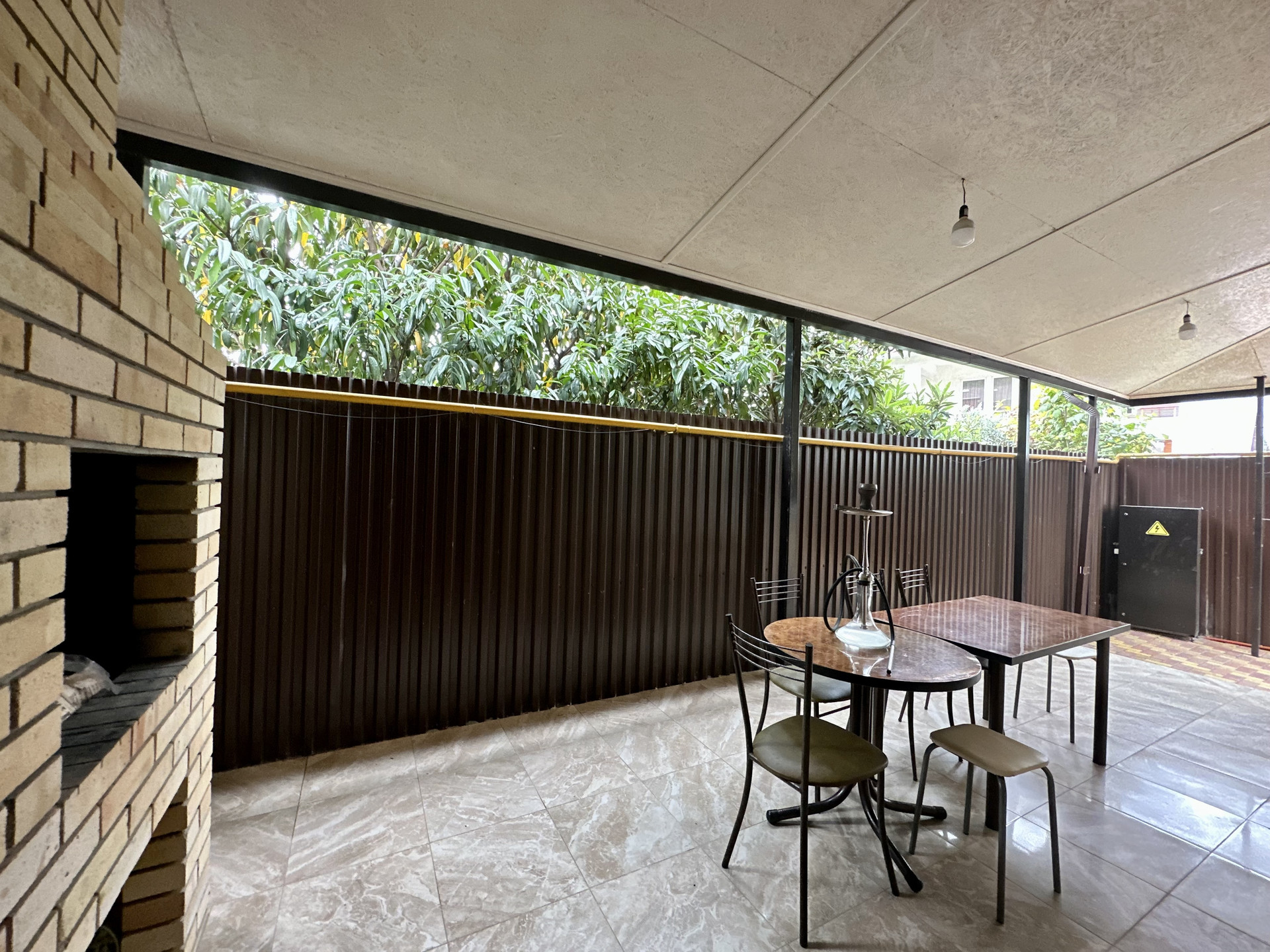 Один на террасу, второй на зону отдыха с мангалом. Парковка.
