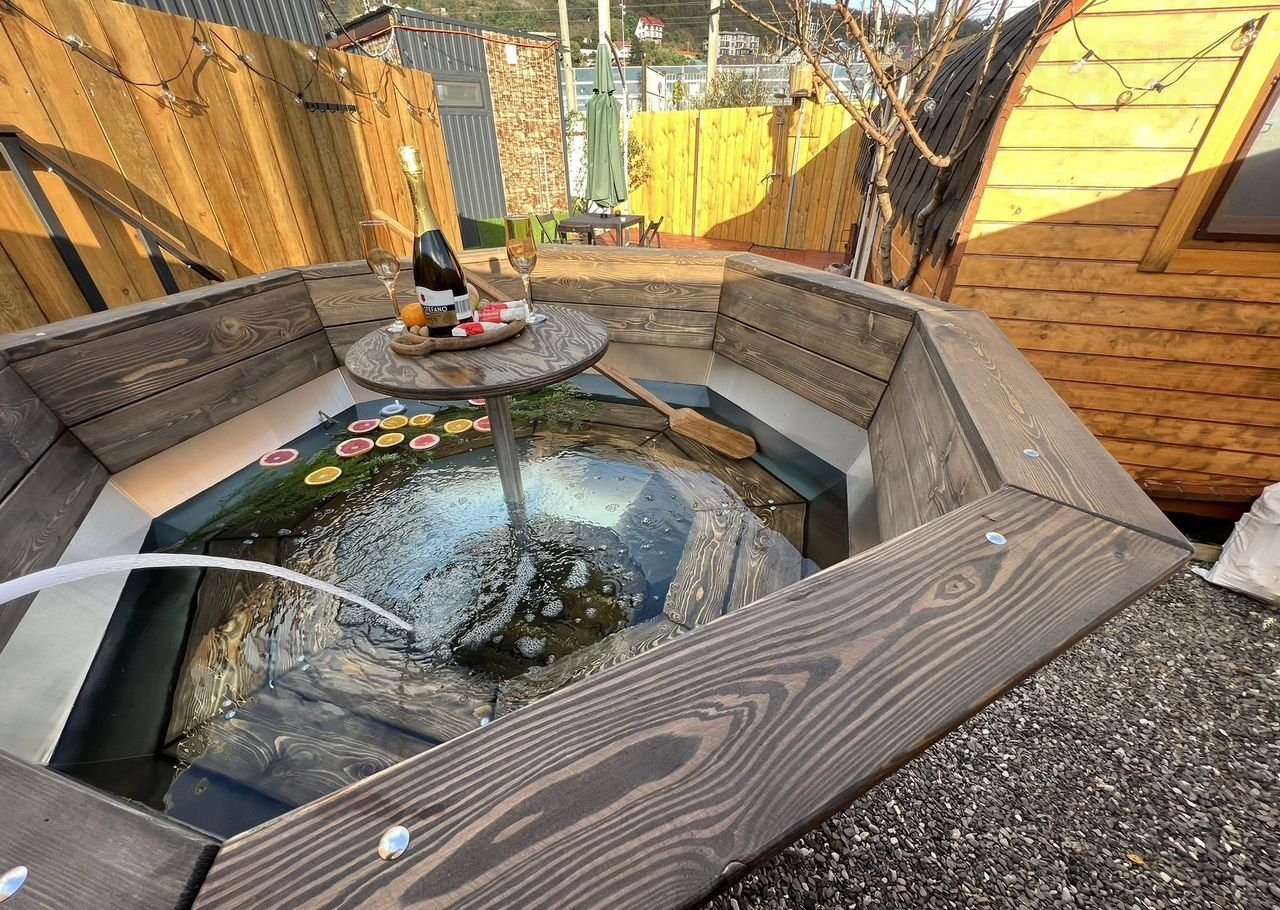 По оснащению: в доме кухня, необходимый набор посуды, холодильник, чайник, кондиционер, телевизор smаrt ТV, фен, wi-fi, предоставляется постельное белье и полотенца. В домике индивидуальный санузел с душем.