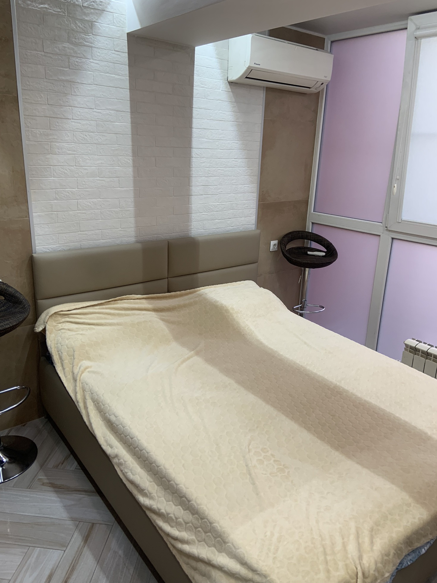 Посуточно. Есть всё для комфортного проживания. Тёплые полы по всей площади, кондиционер, тв, wifi, утюг, стир машина. Установлена мини-кухня, оборудованная мультиваркой,