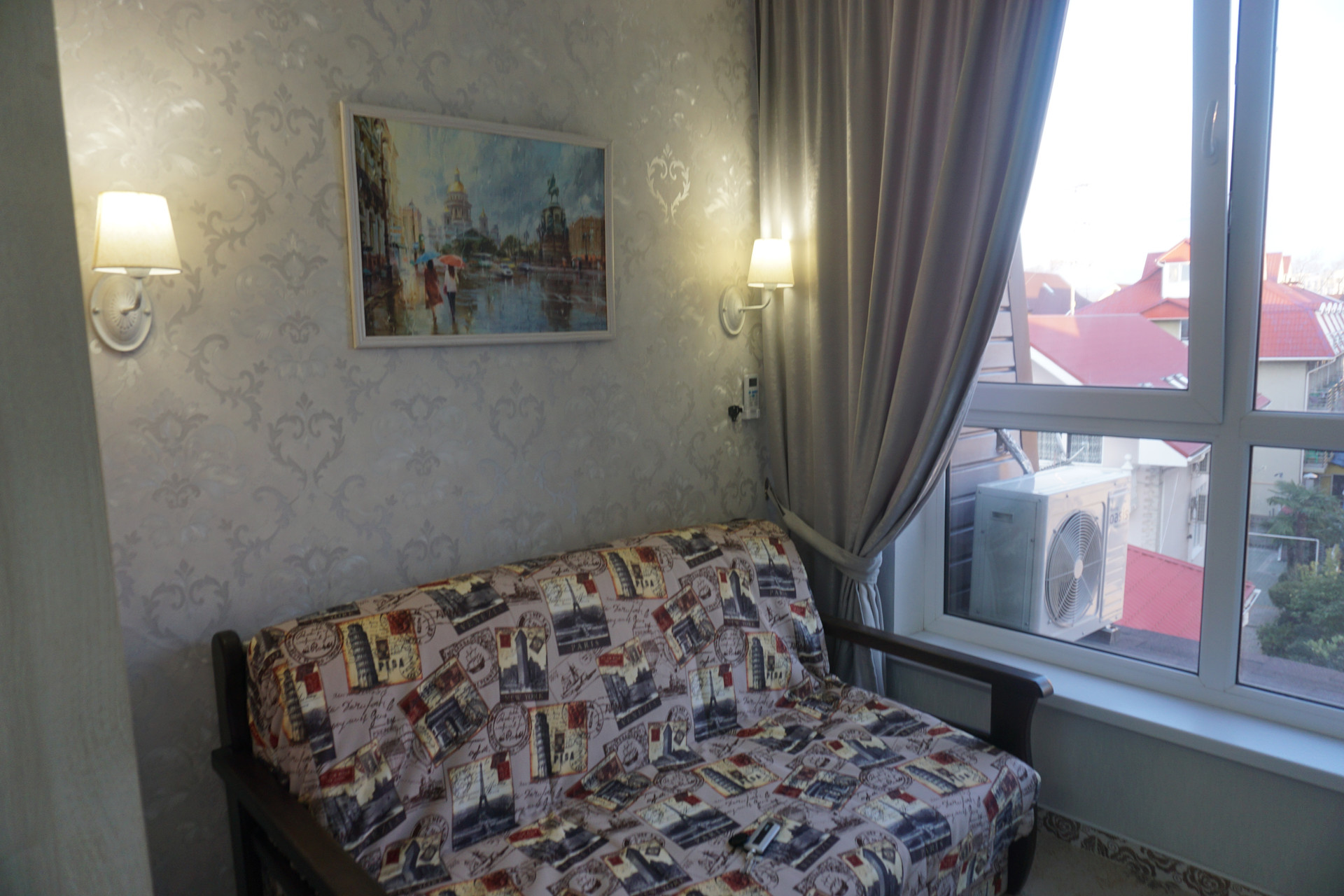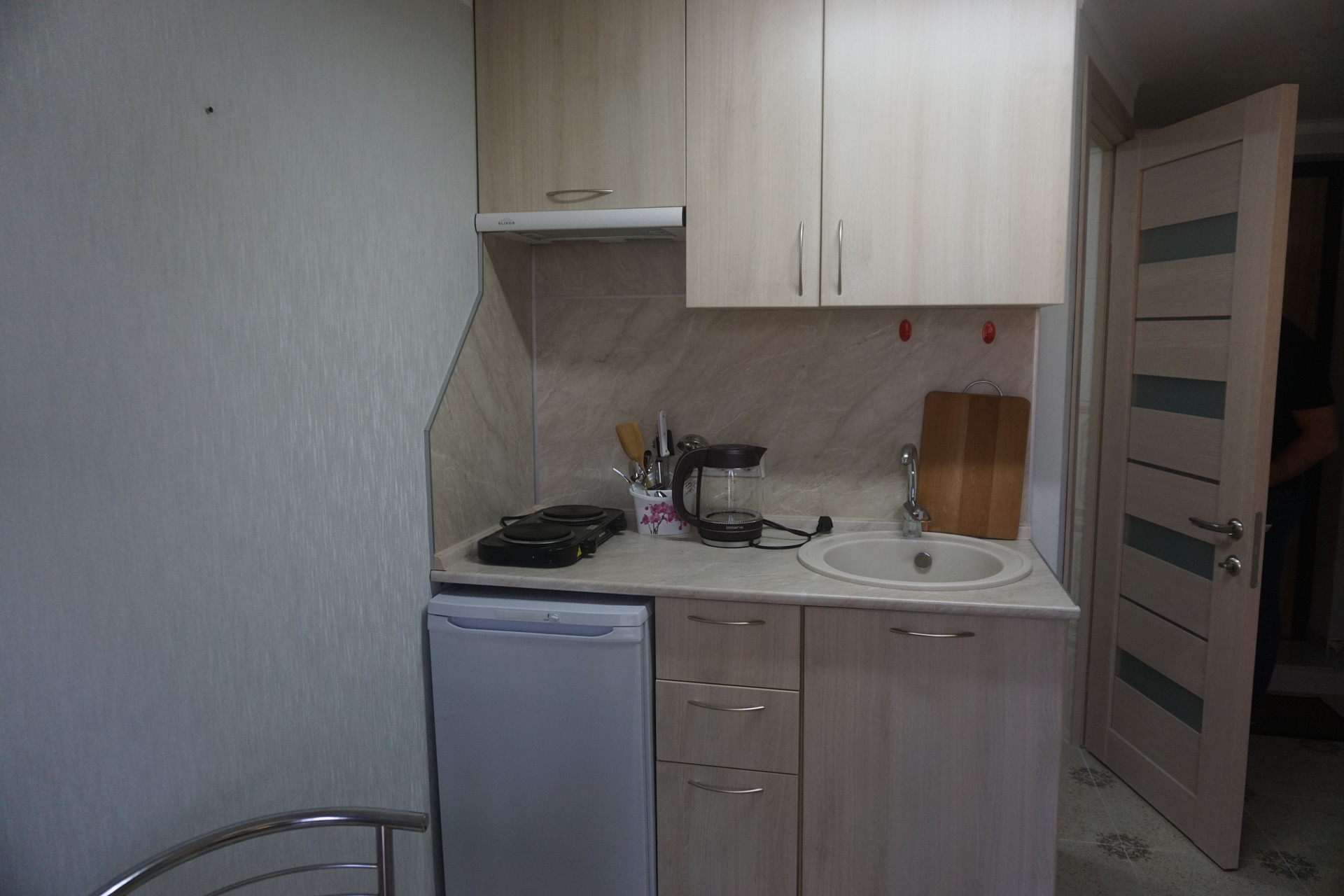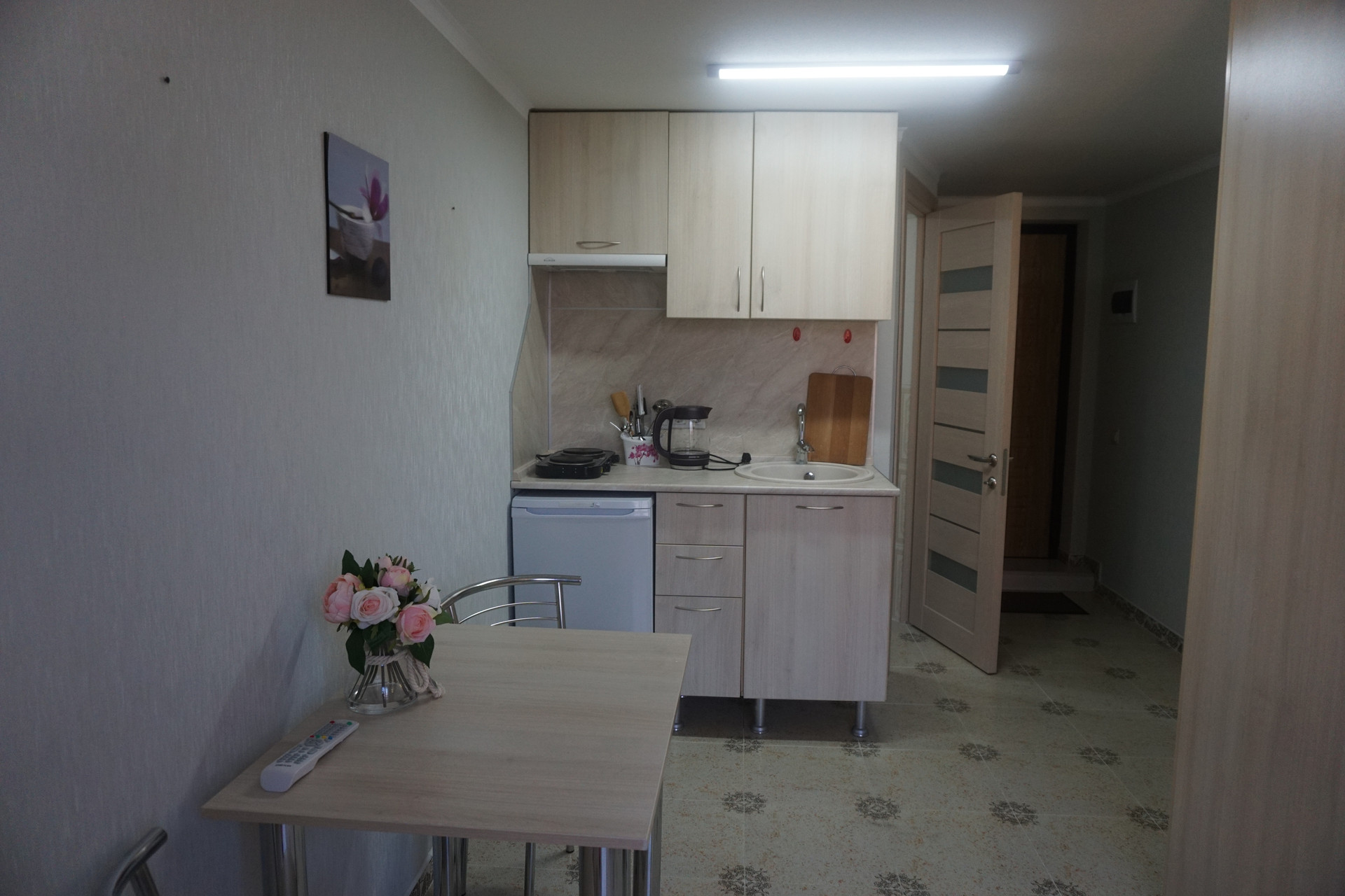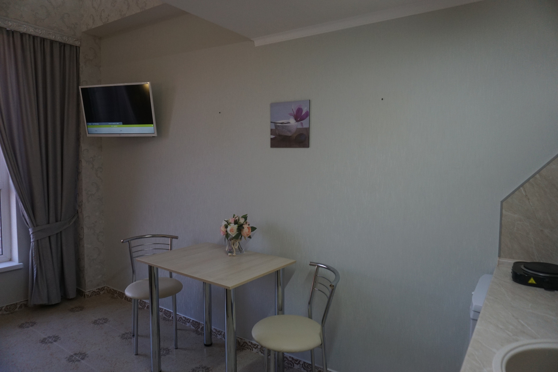 В студии к вашим услугам: Wi-Fi, Ж/К телевизор, Спутниковое телевидение, холодильник, стиральная машина, кондиционер, мини-кухня, чайник, вся необходимая посуда для приготовления еды. Гладильная доска, утюг. Сдаваемая площадь 17 м2