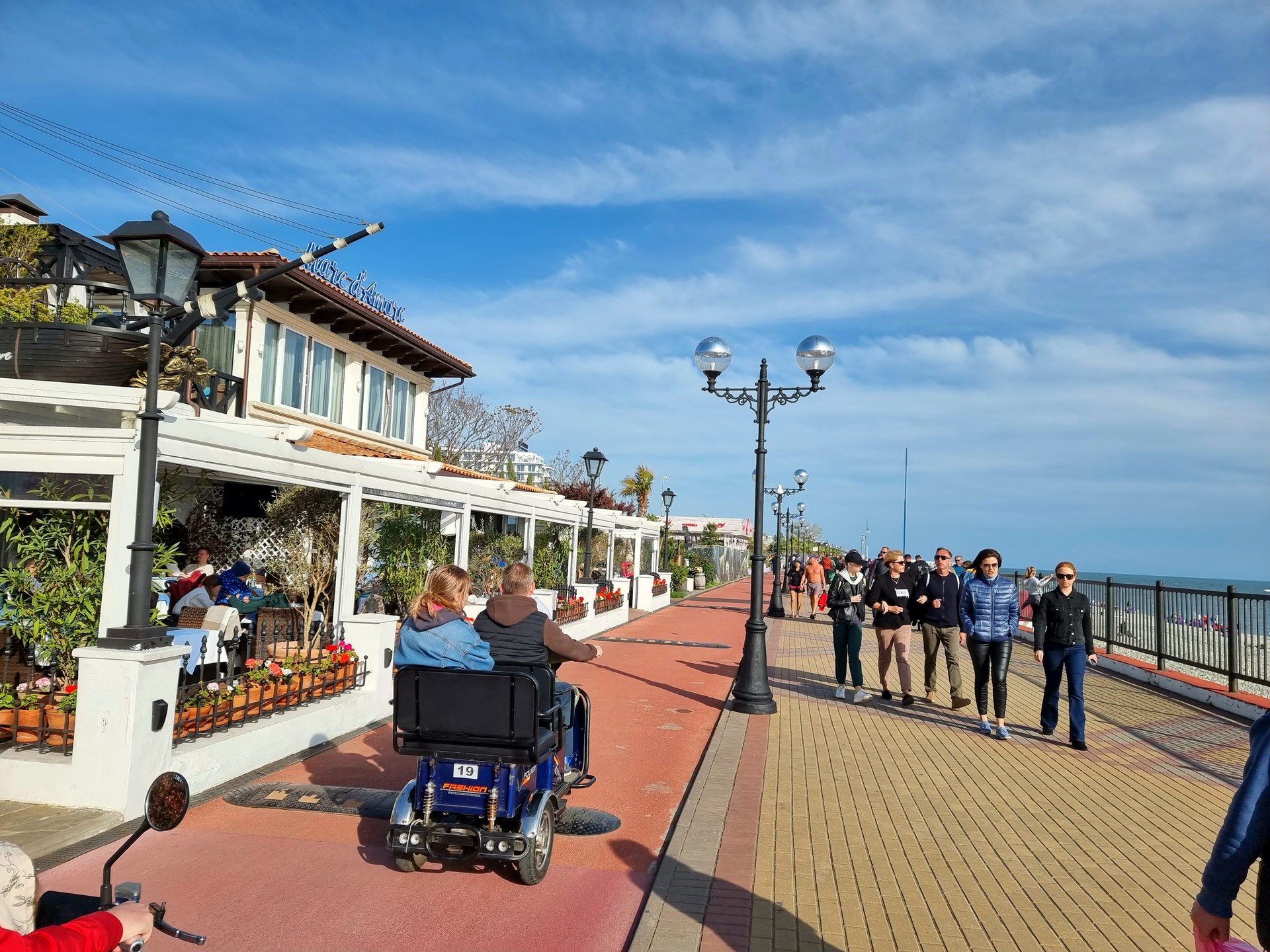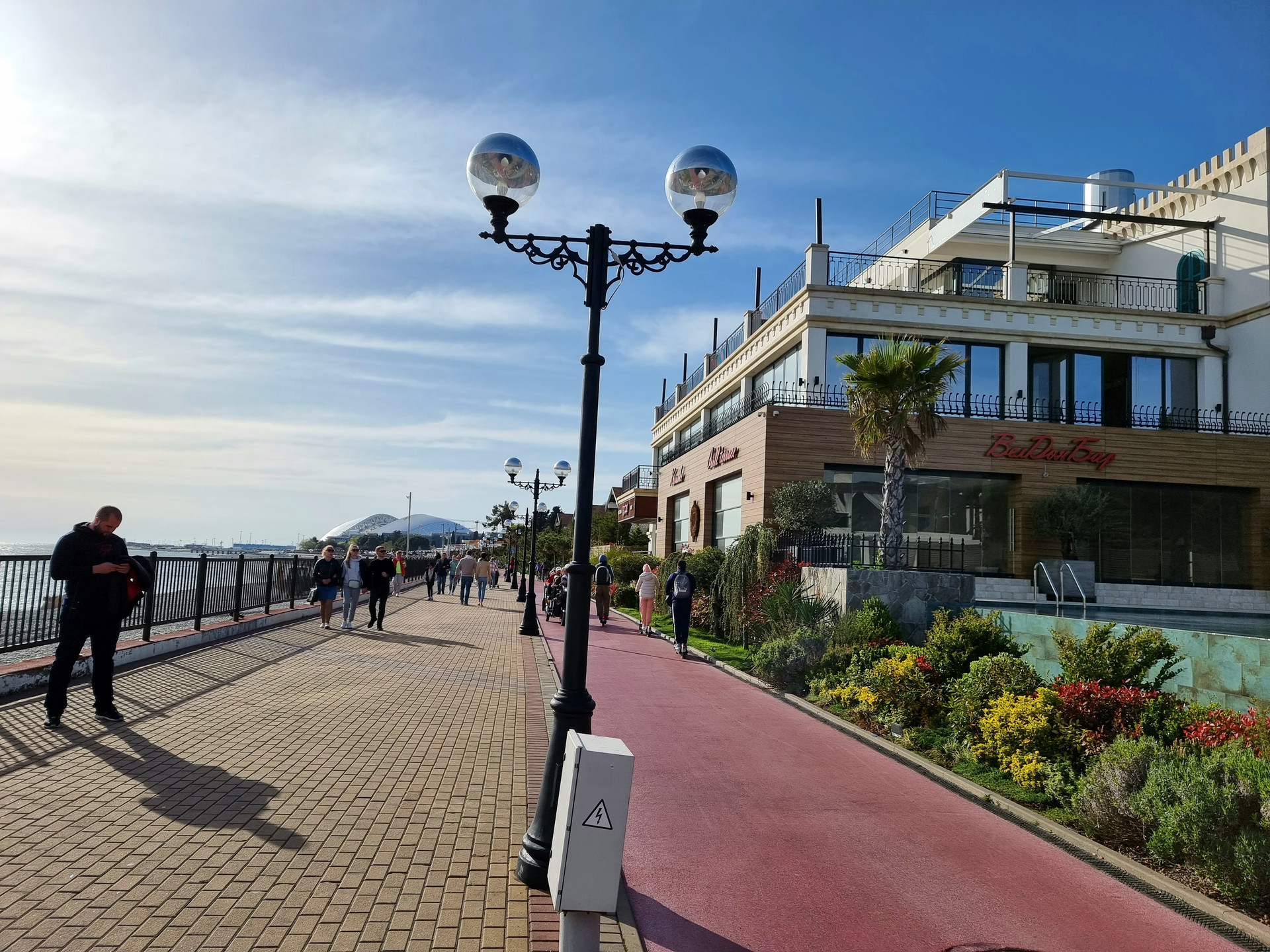 ПЕРВАЯ БЕРЕГОВАЯ ЛИНИЯ - 50 м от моря и набережной, протяжённостью 6,5 км от Морского порта до Абхазии для пеших прогулок с выделенной вело и беговой дорожкой.