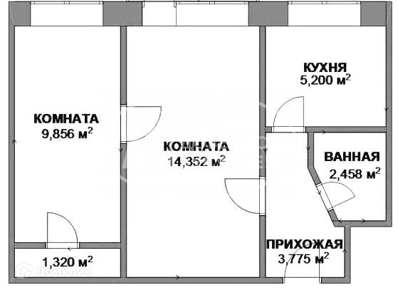 Общая площадь 44.1 м2